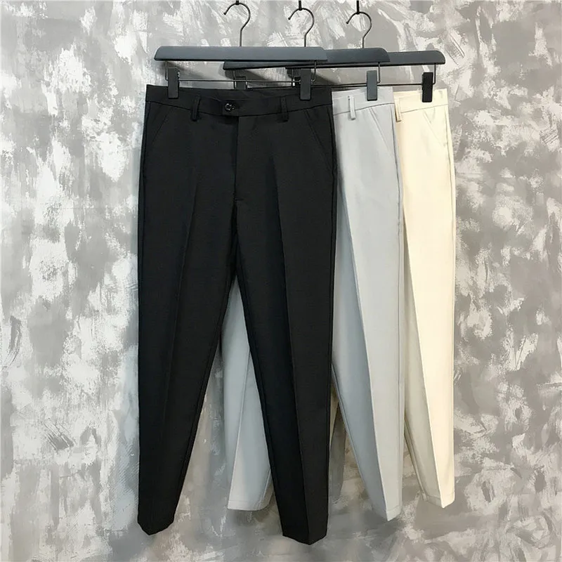 Мужские зауженные брюки до щиколотки, черные и белые однотонные зауженные брюки, не требует глажки, для офисного работника, лето 2021