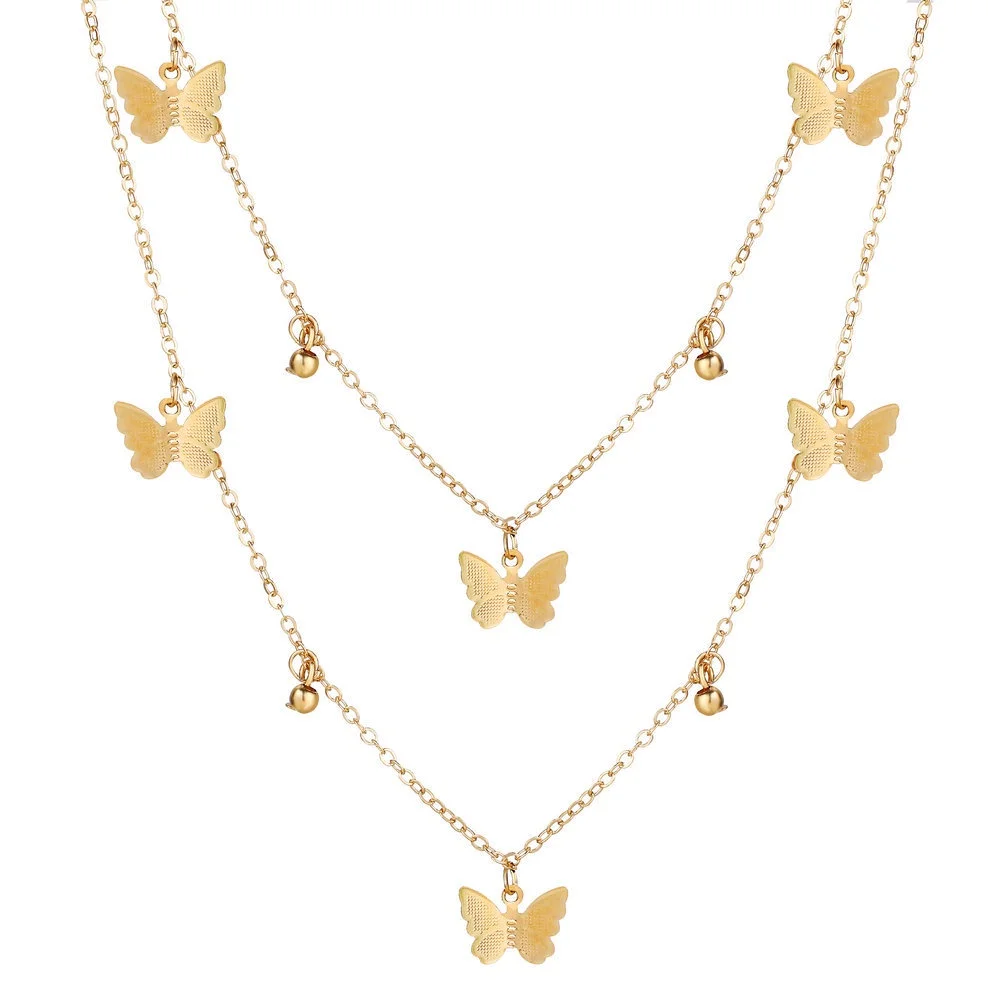 Модное женское ожерелье-бабочка, двухслойная простая Подвеска-бабочка из сплава, цепочка для ключицы, Женские аксессуары, оптовая продажа