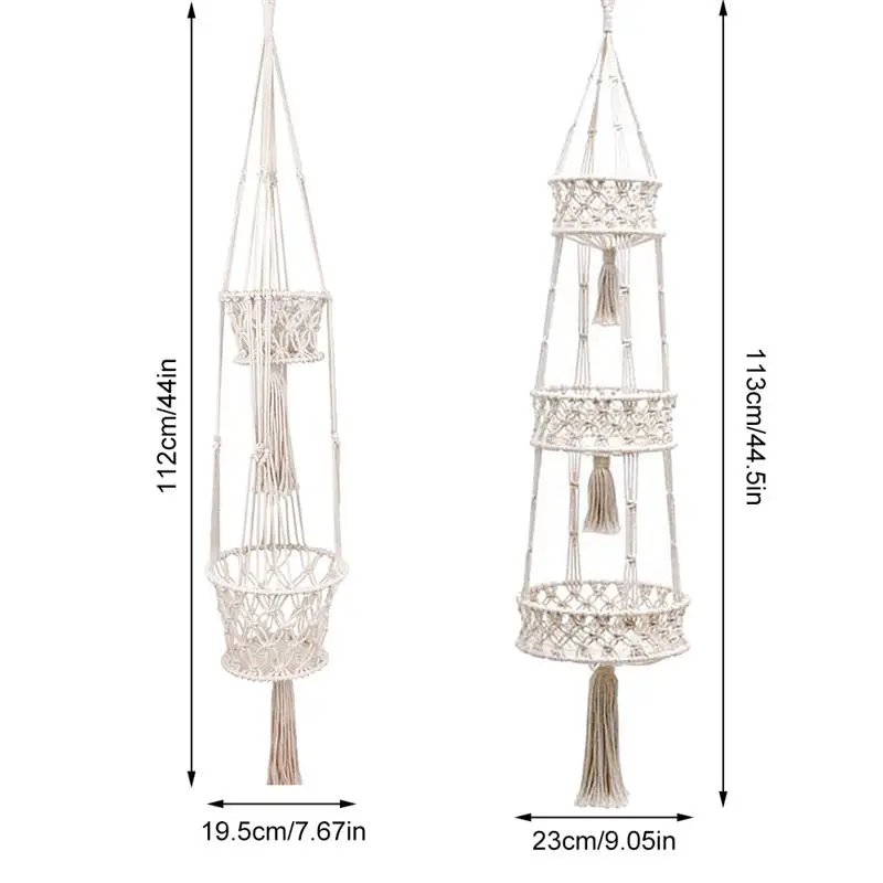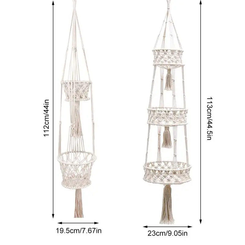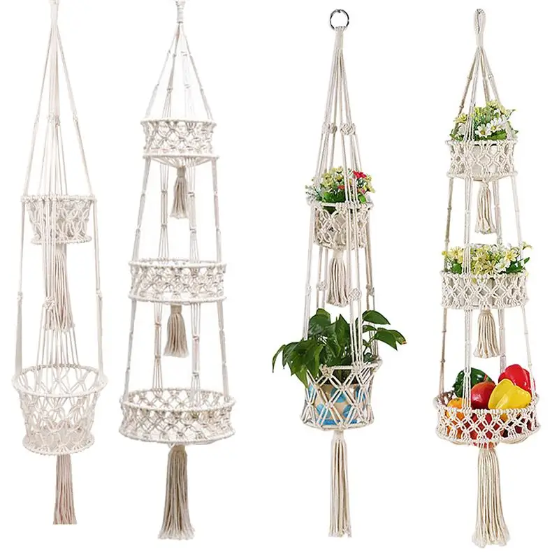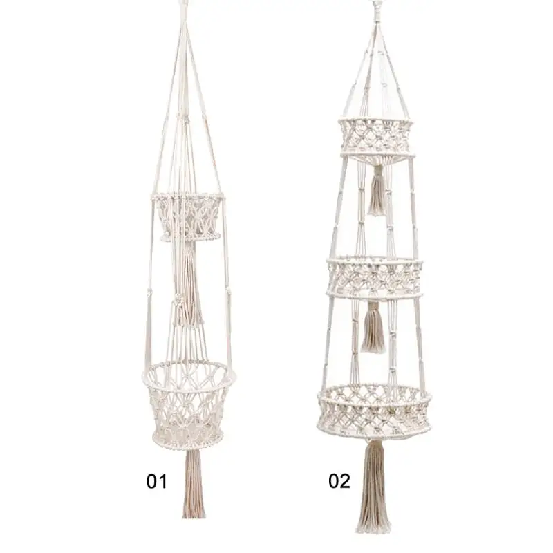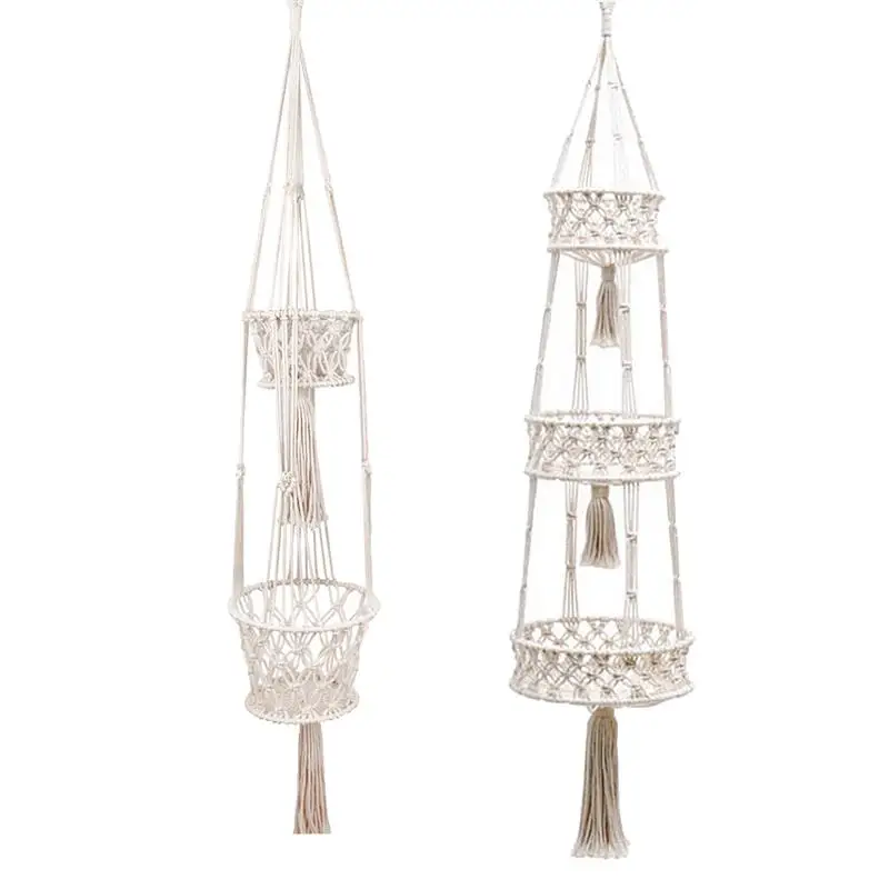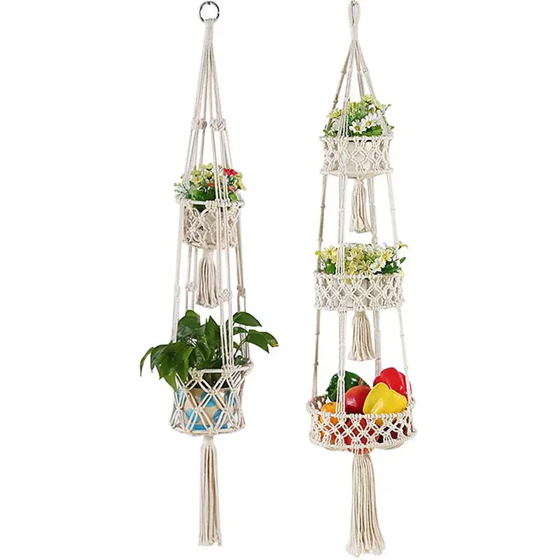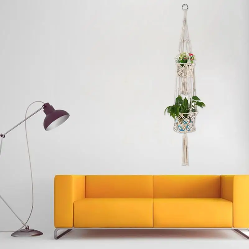 Цветочный горшок в стиле бохо, плетеная корзина, сетчатая сумочка, садовая плетеная подвесная корзина, декор в стиле бохо, вешалка для растений, гобелен из хлопковой веревки с бусинами