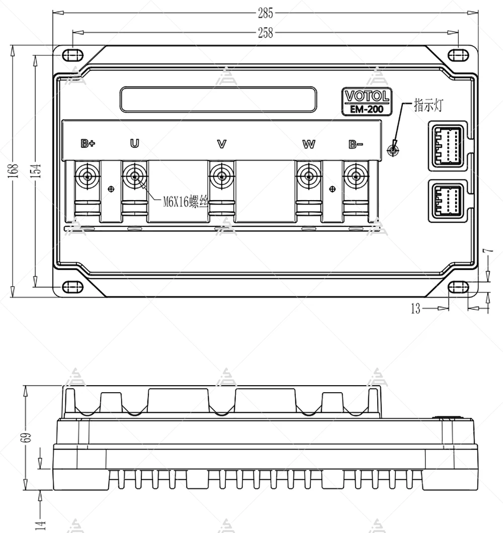 Контроллер серии EM-это контроллер синусоидального типа, который является бесщеточным контроллером постоянного тока с ослаблением потока. Как правило, он хорошо сочетается с QS Motors, если вы хотите сочетать с новым брендом, некоторые параметры должны быть протестированы самостоятельно.