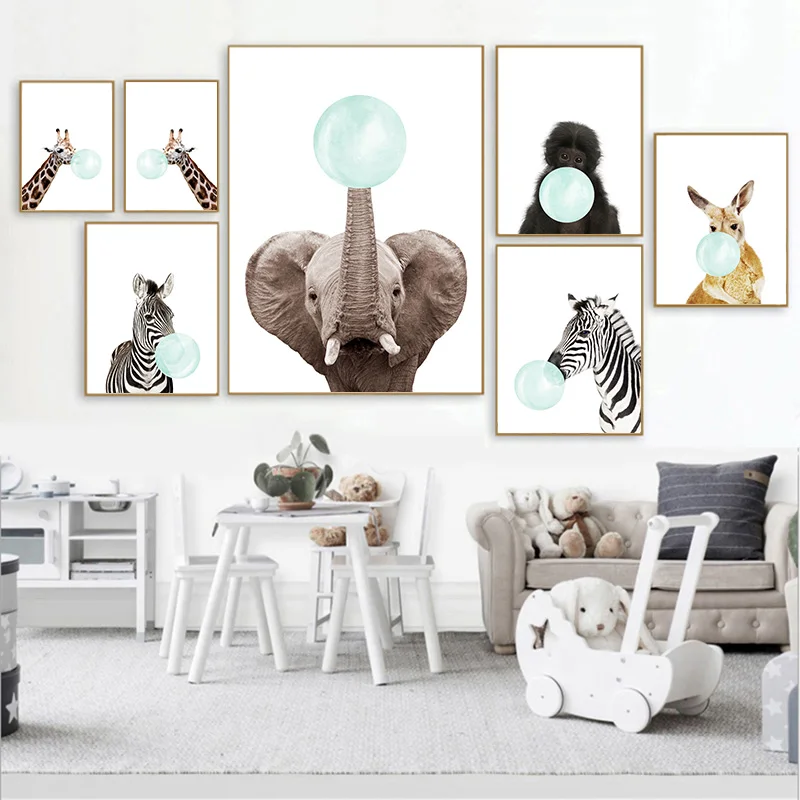 Плакат на холсте с изображением зебры, жирафа, слона, животных, для детской комнаты