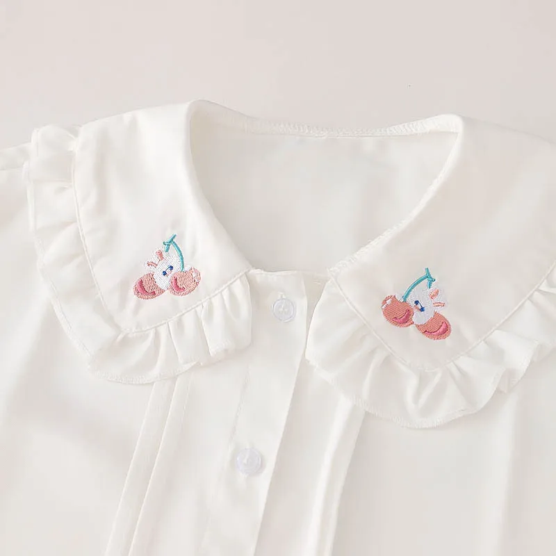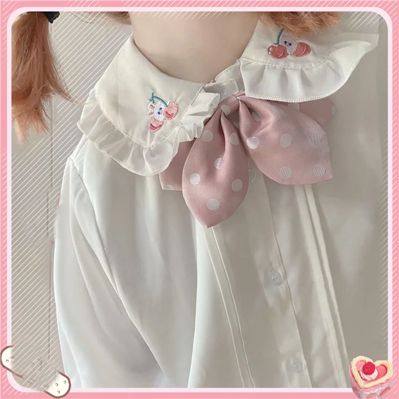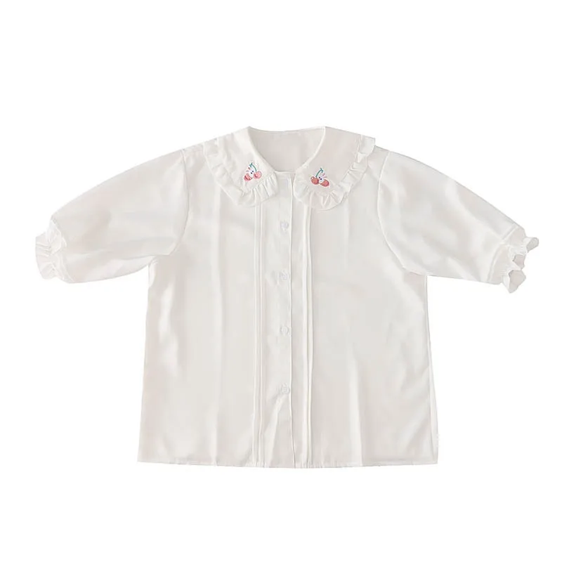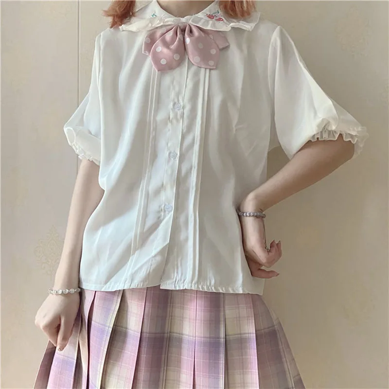 Милая Белая Блузка в стиле "Лолита", топы с короткими рукавами-фонариками и милым кроликом для девочек, женские шифоновые топы, японская мода 2021, школьная форма