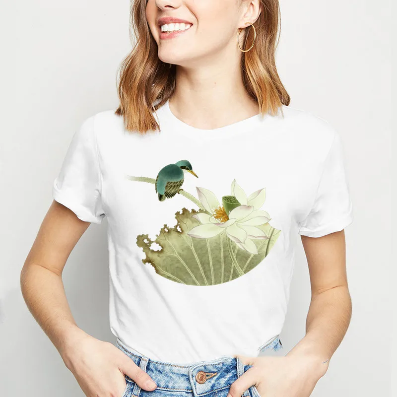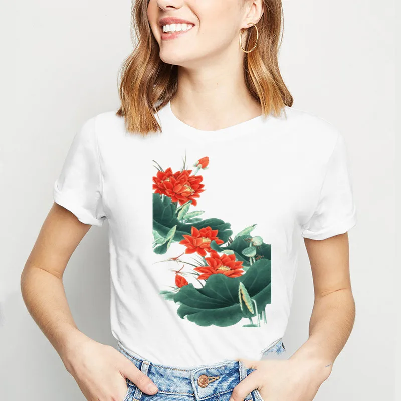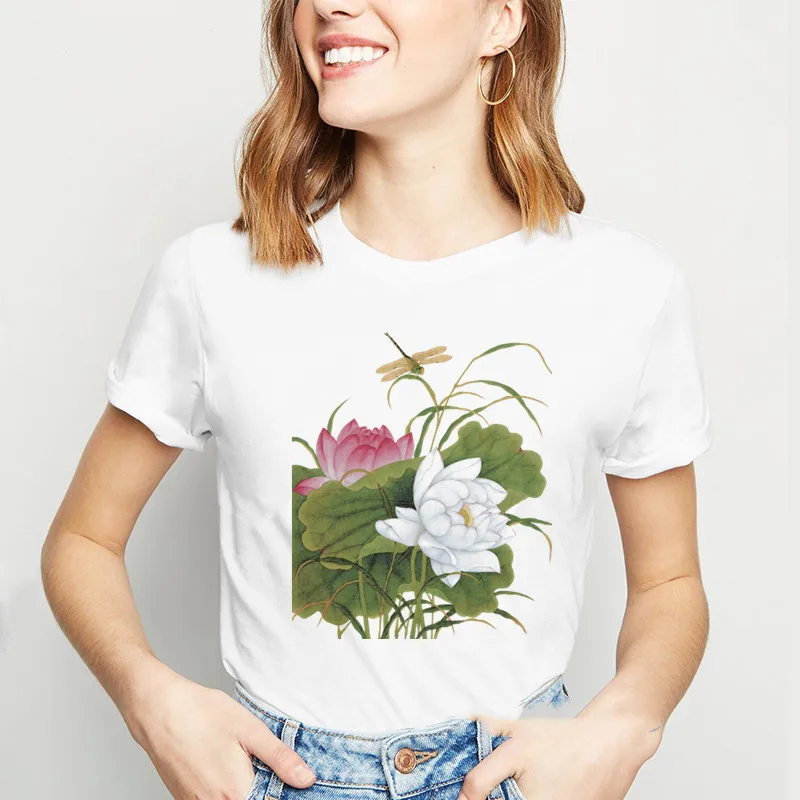 Cartoon Women T ShirtLotus Printed Tshirt Ladies