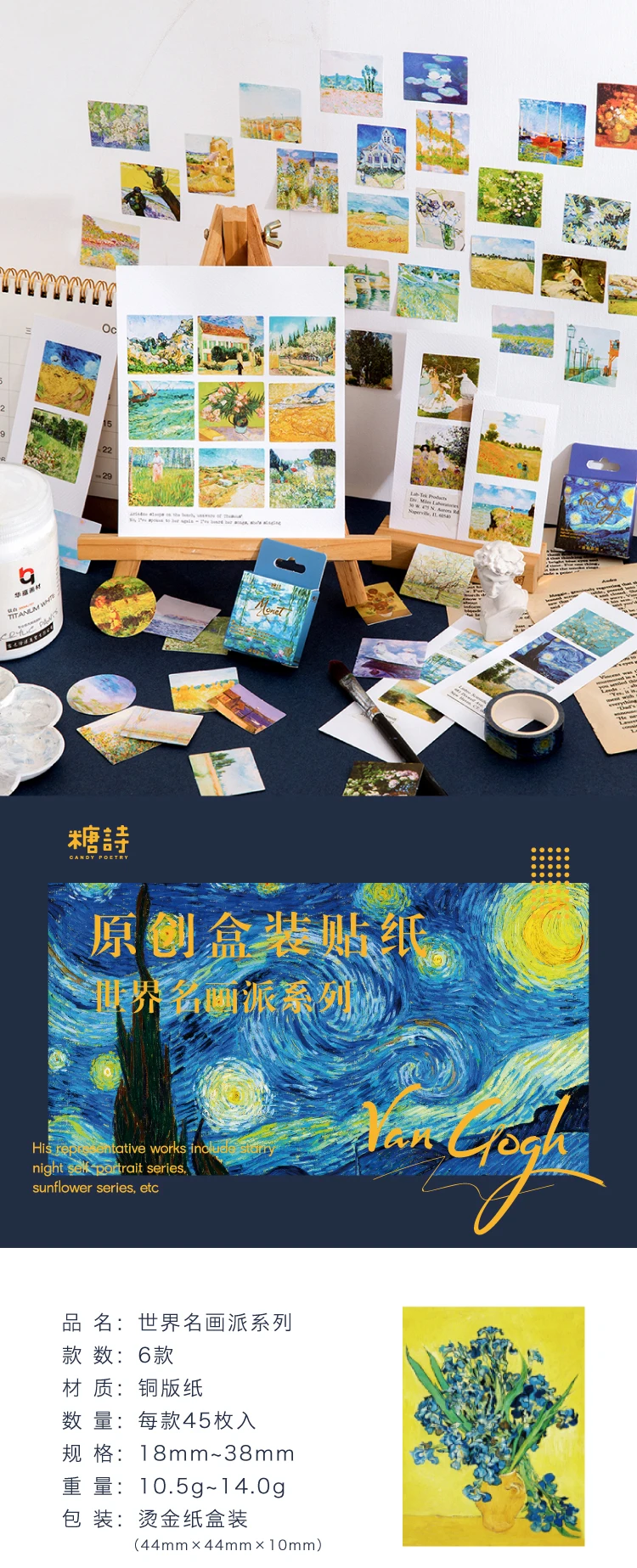 45 шт. знаменитых наклеек с рисунком, набор s, Ван Гоа муча, Моне, ...