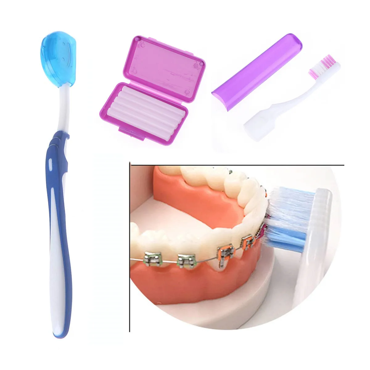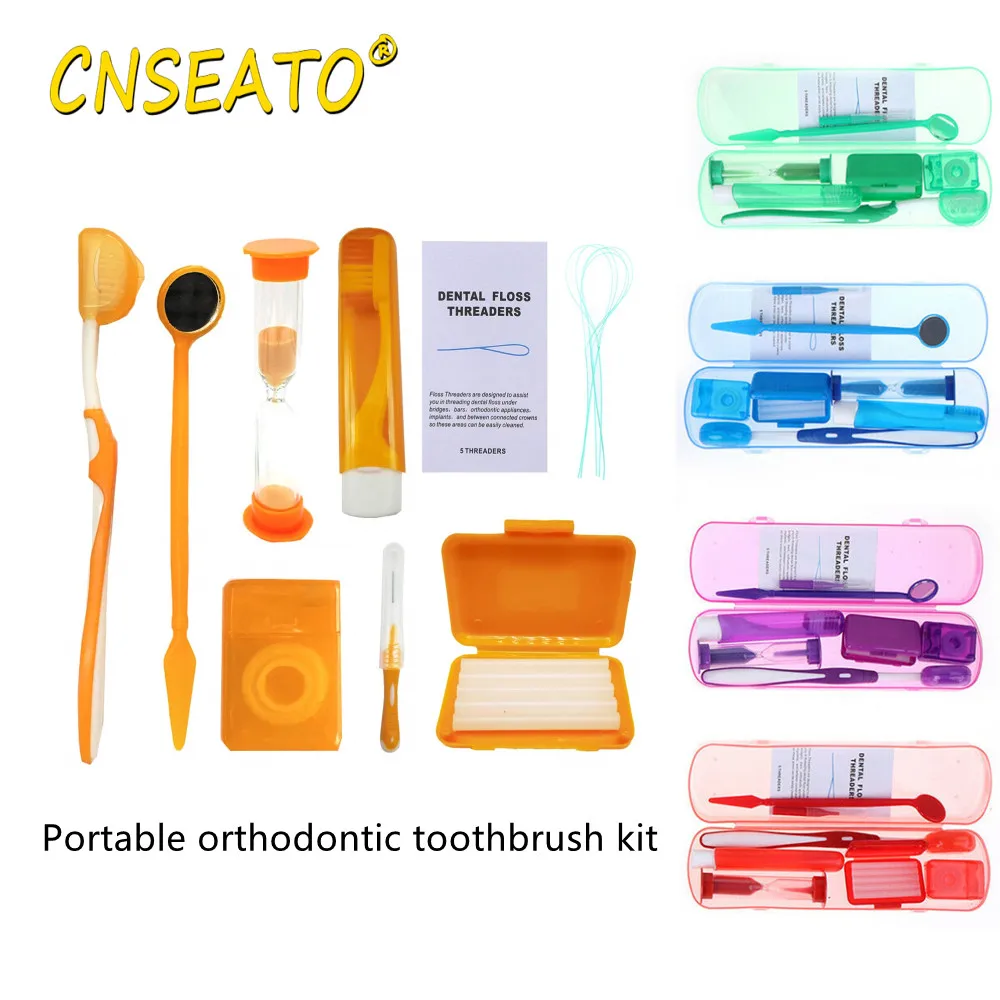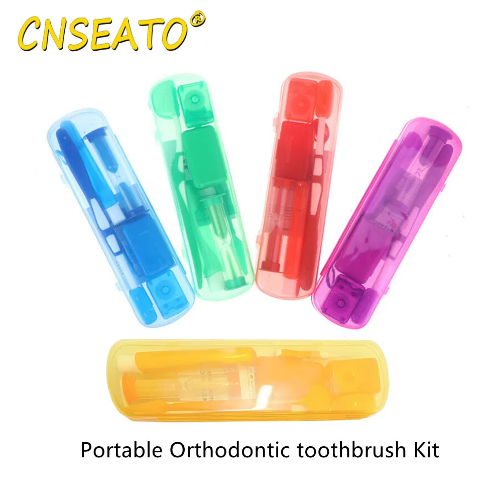 CNSEATO зубная щетка в коробке, портативная Ортодонтическая зубная щетка, набор для межзубной щетки, зубная нить, стоматологический воск, уход за полостью рта, дорожная Чистка