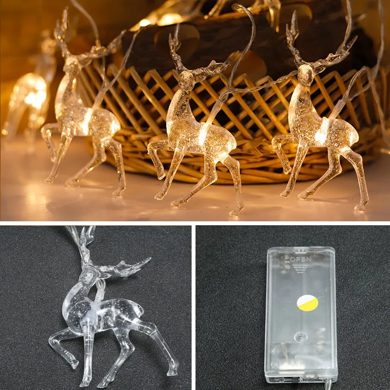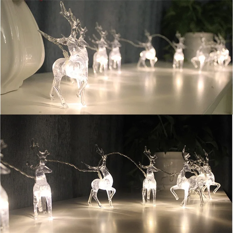 новогодний олень Рождественская гирлянда с оленями, работающая от батарейки, скасветильник светильник с оленем, домашний декор, праздничные праздники, Рождественская вечерние, 20 светодиодов