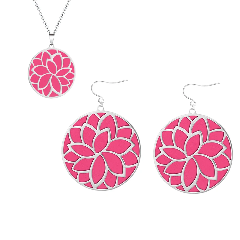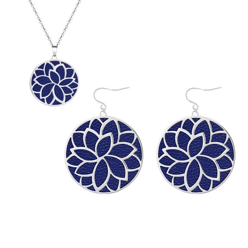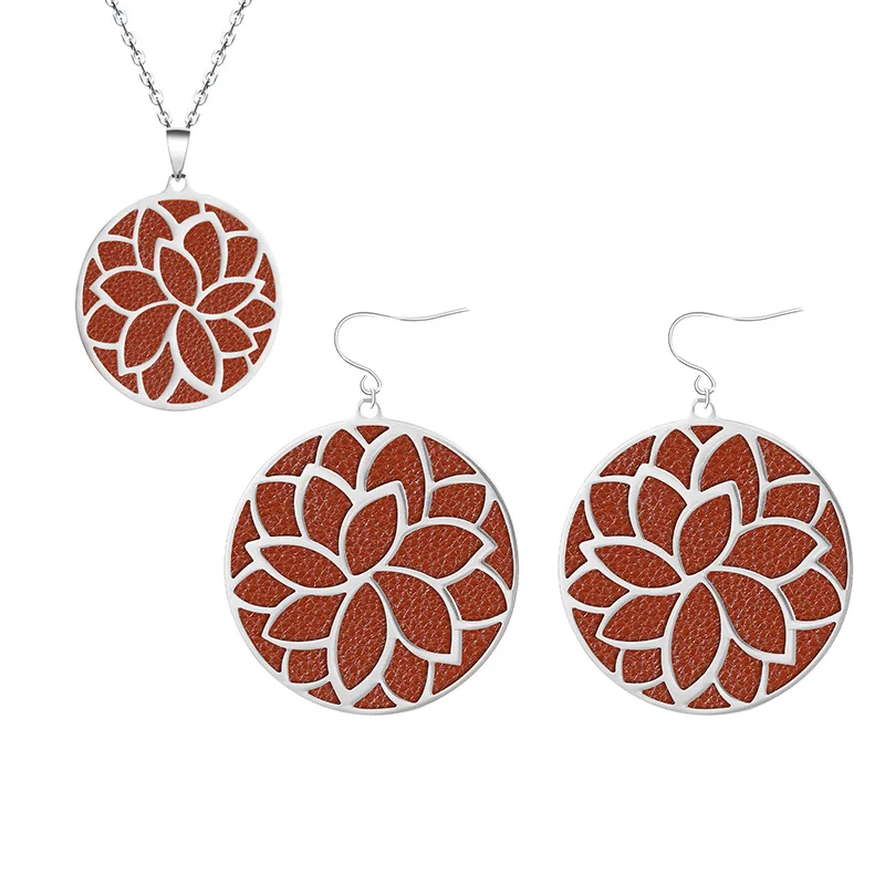 Новинка 2021, набор украшений Koaem из нержавеющей стали, подвеска, Сменное кожаное ожерелье, серьги в форме цветка для женщин