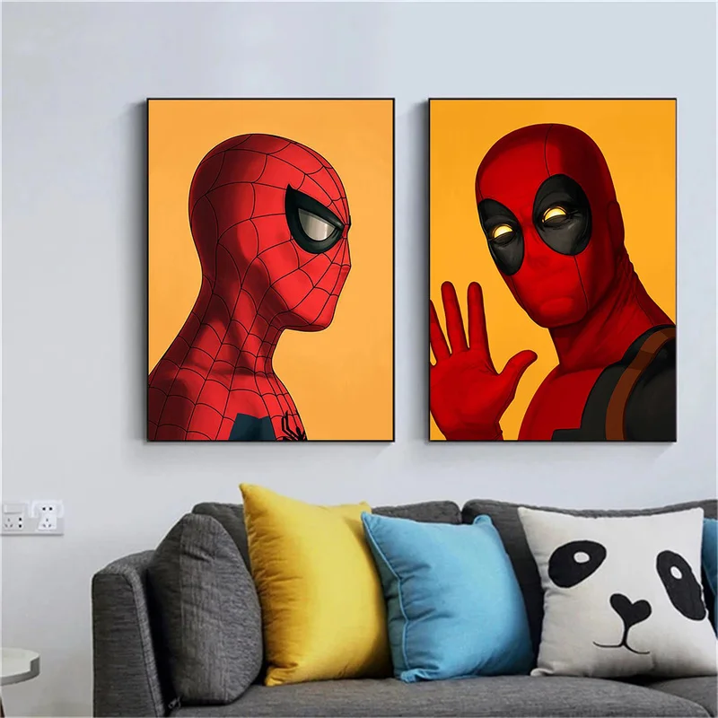 Картины на холсте с героями мультфильмов Марвел, Человек-паук, заба...