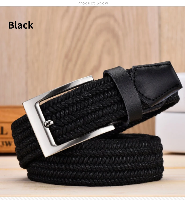 Мужские кожаные ремни для эластичной веревки, Плетеный тканый ремень из воловьей кожи 3,5 см, черный ремешок, высокое качество: