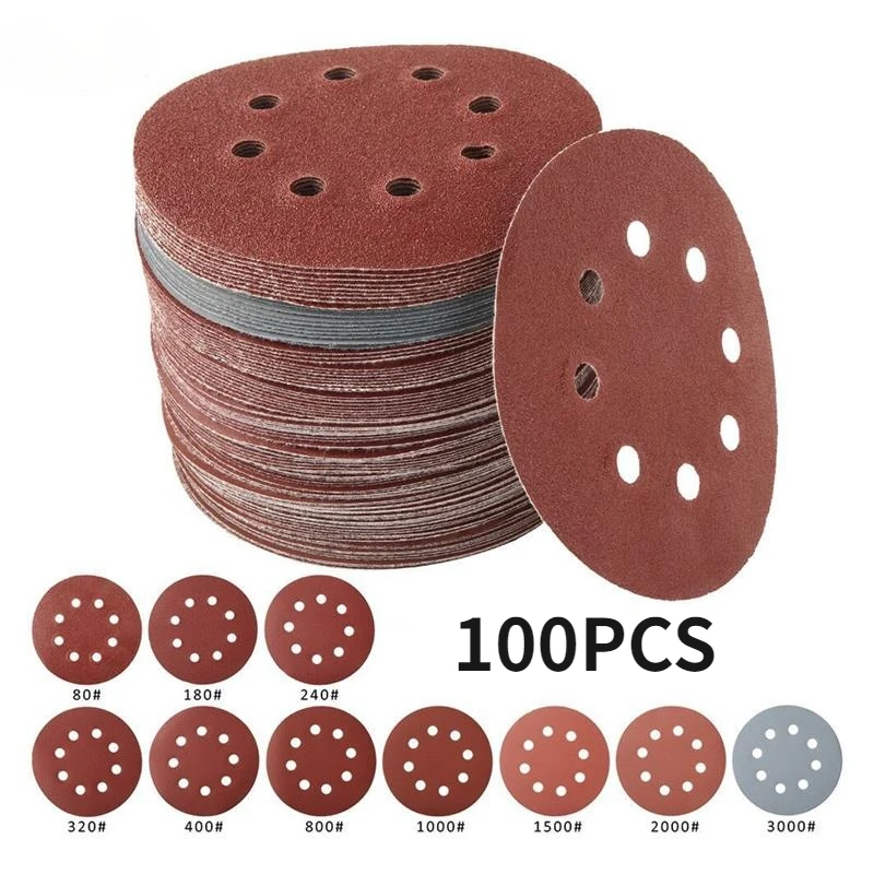 100 шт., Набор круглых шлифовальных дисков, 5 дюймов, 125 мм, 80-30...