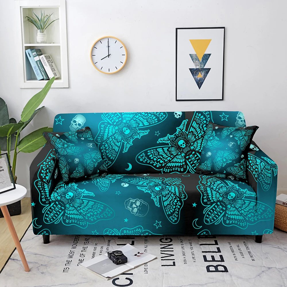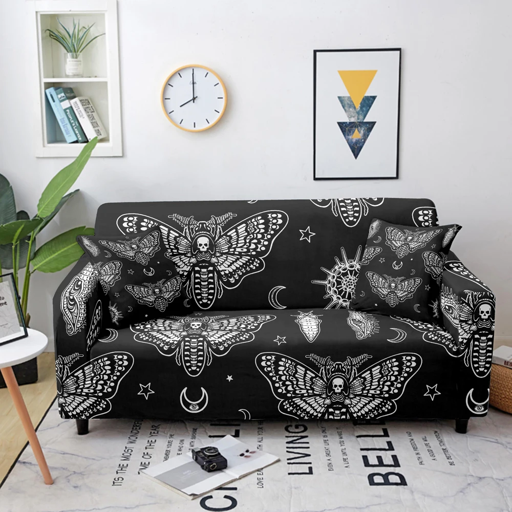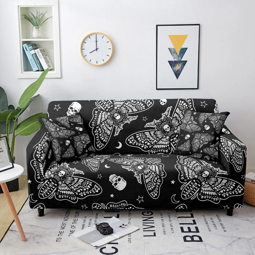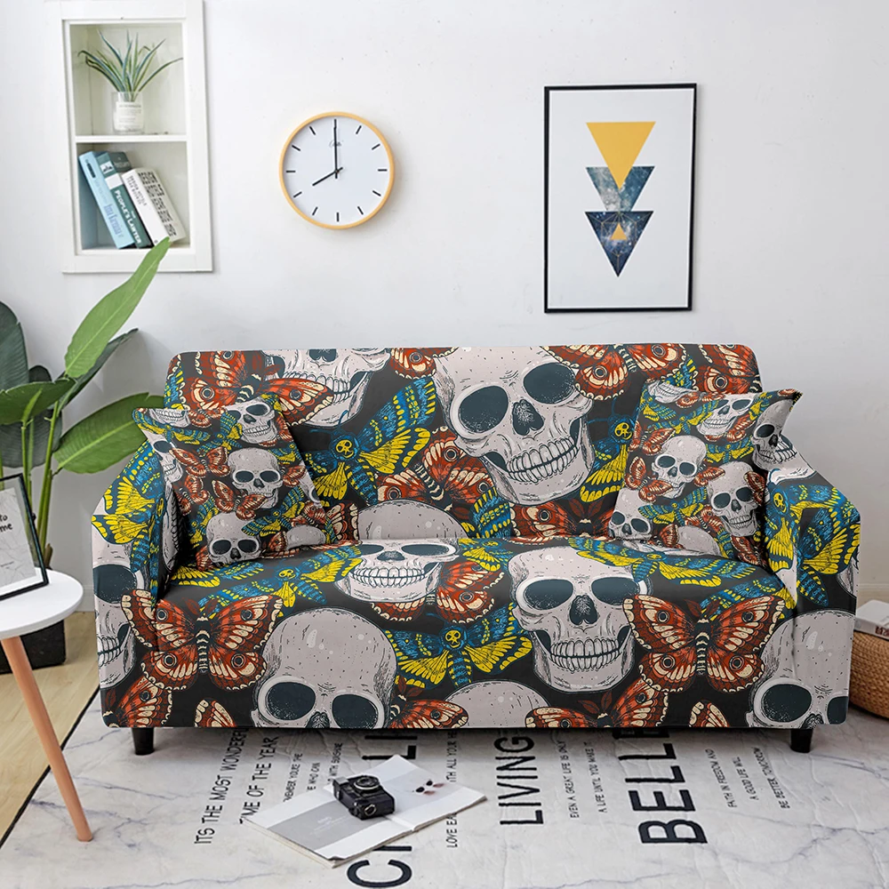 Эластичный чехол для дивана с изображением черепа для гостиной, чехол для дивана с бабочкой, шезлонг, чехол для секционного дивана угловой чехол для дивана