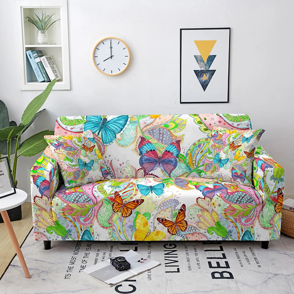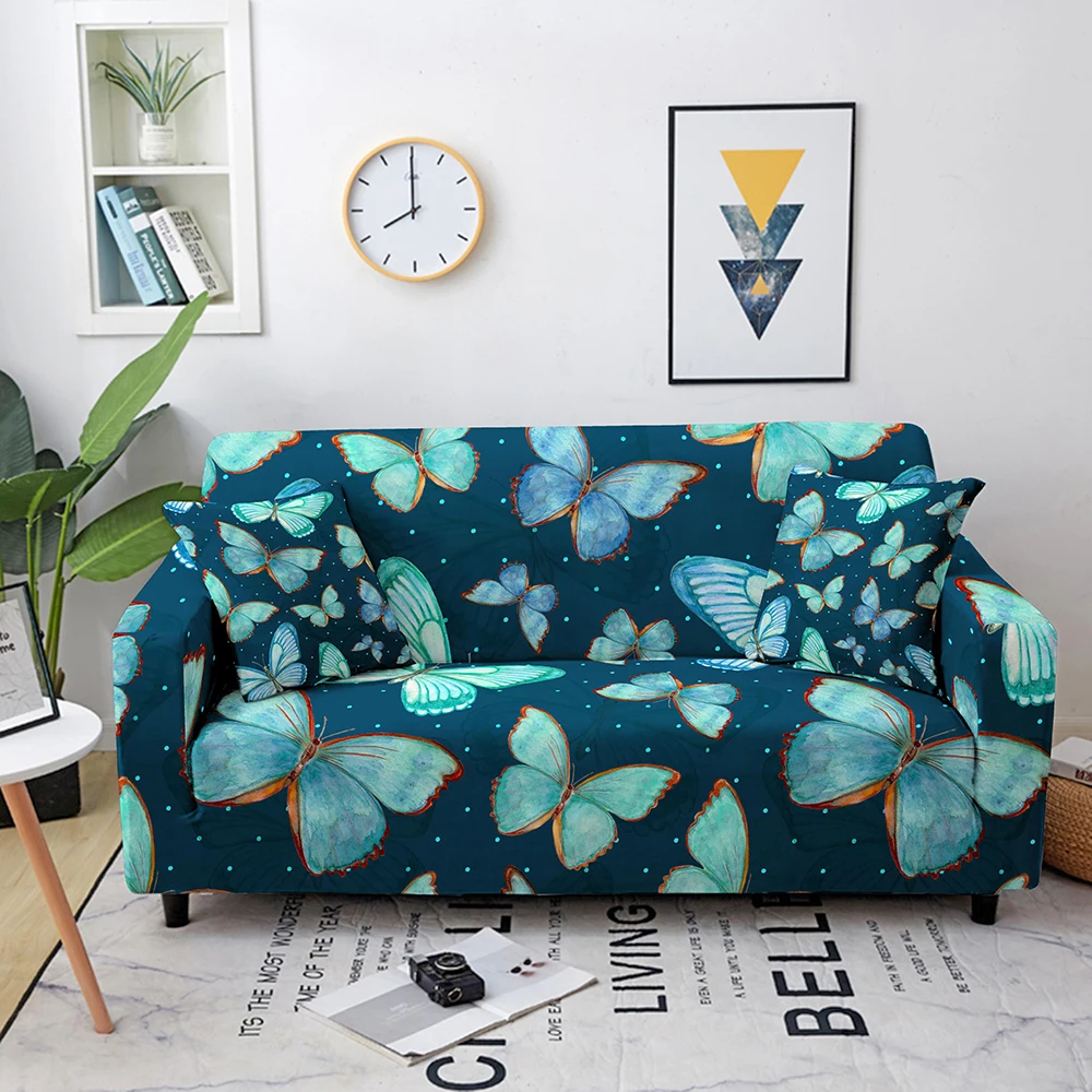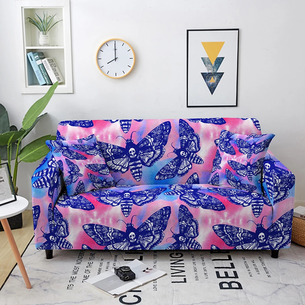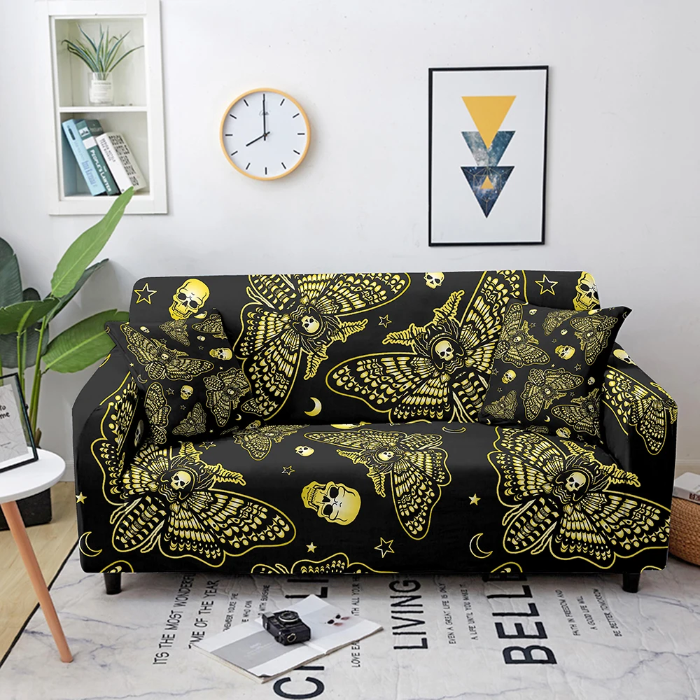 Эластичный чехол для дивана с изображением черепа для гостиной, чехол для дивана с бабочкой, шезлонг, чехол для секционного дивана угловой чехол для дивана