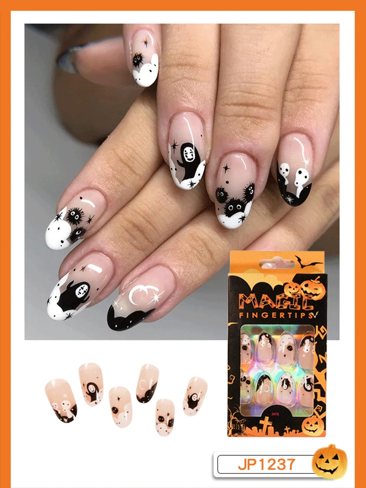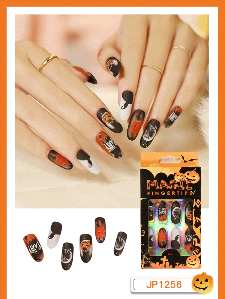 Накладные ногти Хэллоуин Череп Паук игральные кости полное покрытие накладные ногти сделай сам приклеивающиеся ногти принадлежности для профессиональных ногтей
