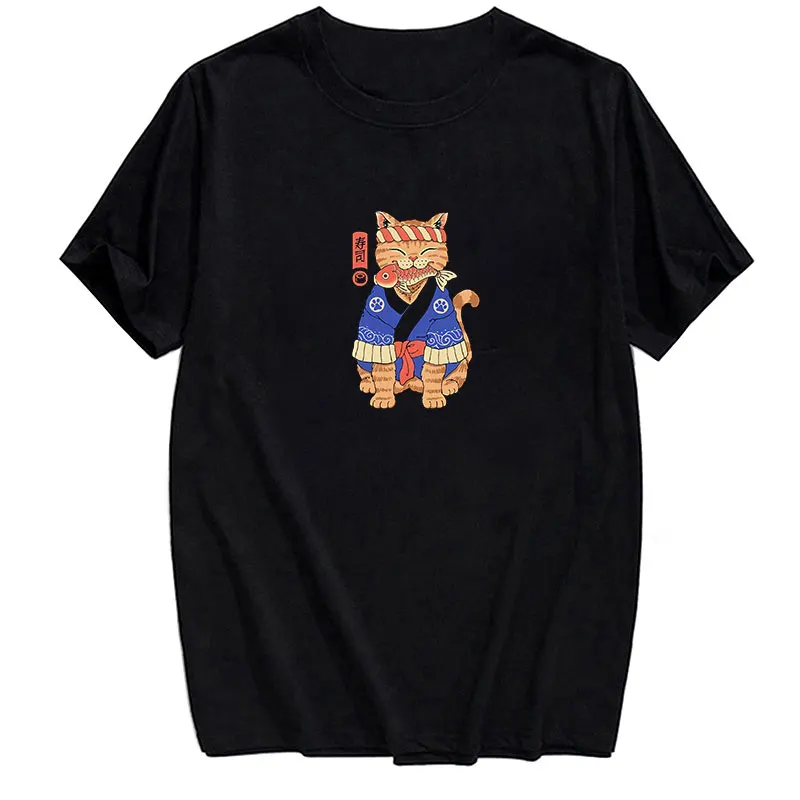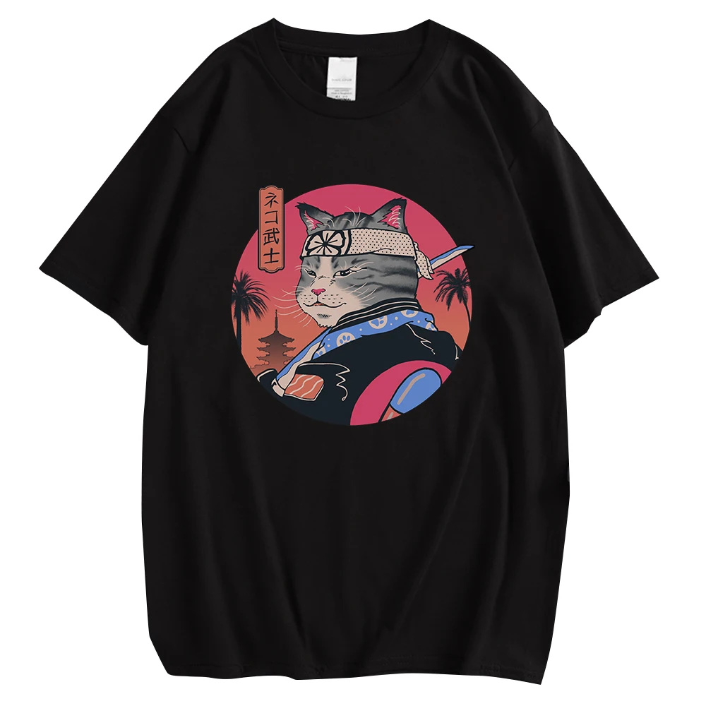 Хлопковая футболка CLOOCL с японским аниме, кошкой, Самураем, летние крутые футболки с 3D-принтом, уличная забавная футболка с коротким рукавом, мужская рубашка