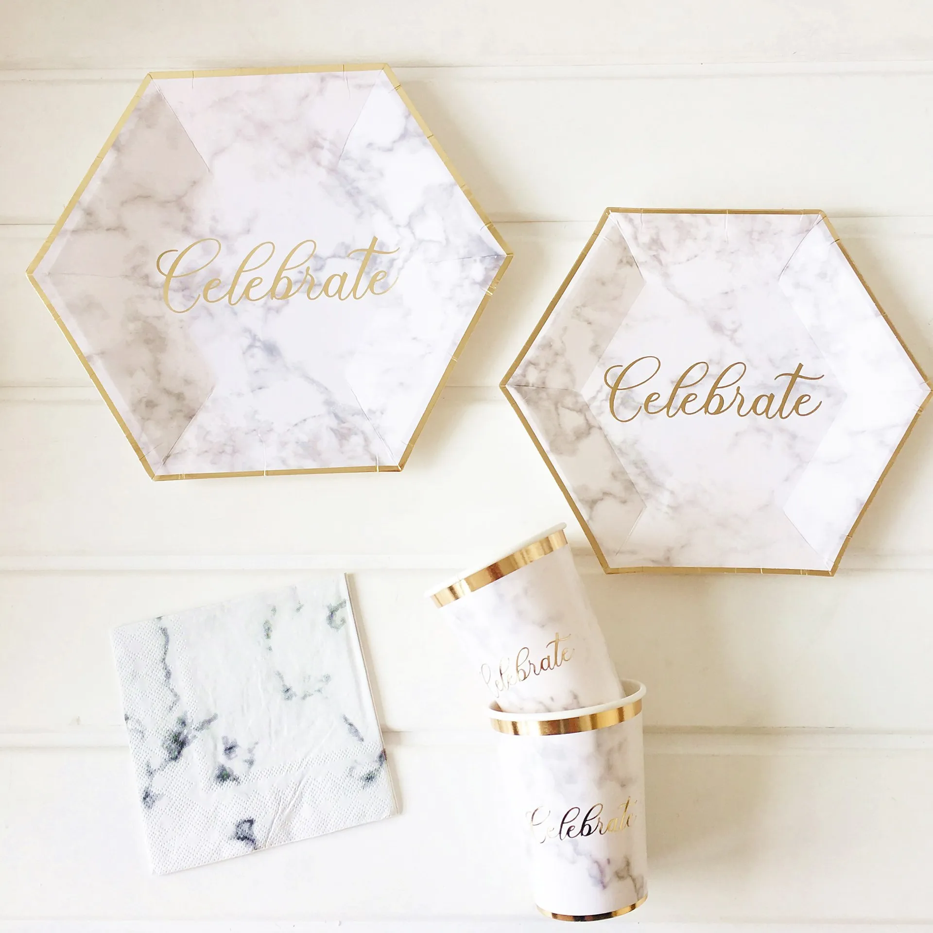 Одноразовые Стеклянные салфетки для вечерние, наборы посуды из соломы и мрамора, товары для детского дня рождения, свадьбы, вечеривечерние