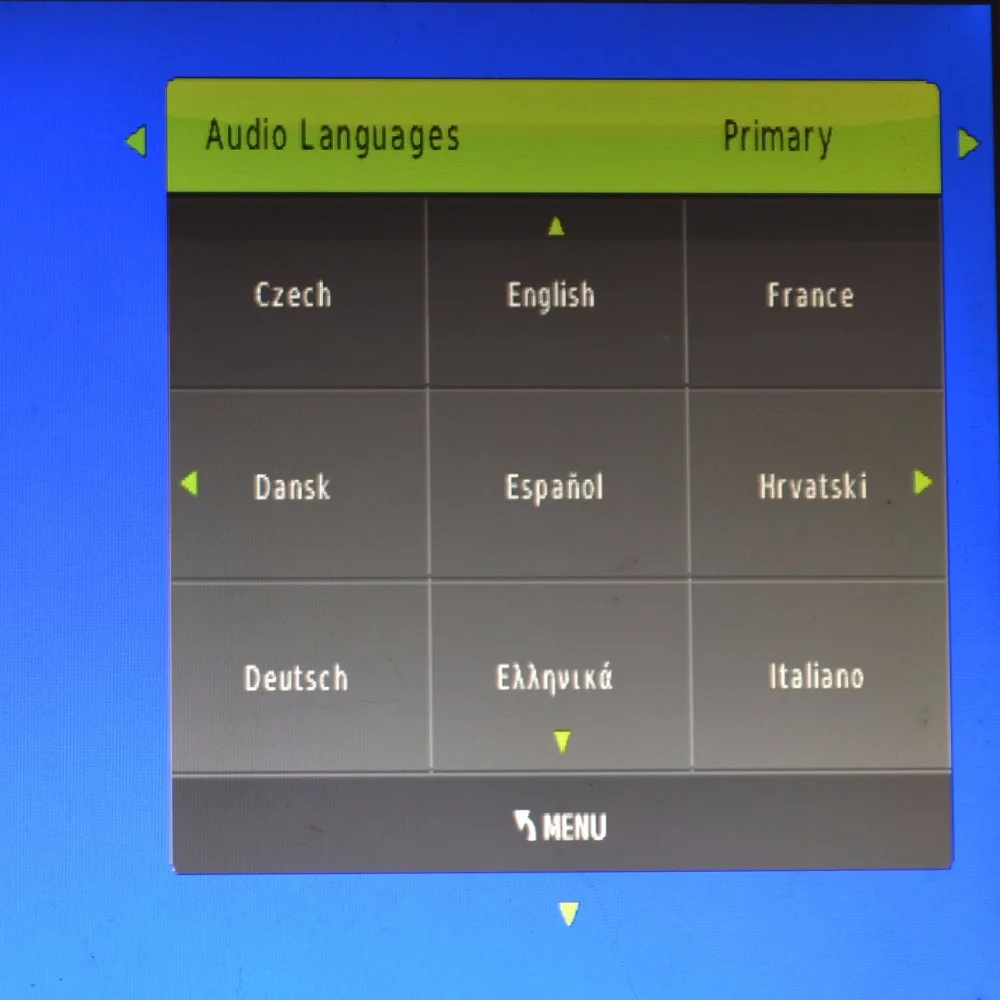 Язык OSD: русский, английский, чешский, французский, Magyar, Polski, Dansk, Espanol, Hrvatski, Nederland, Deutsch, Italliano, Norsk, Portugues, Suomi,
