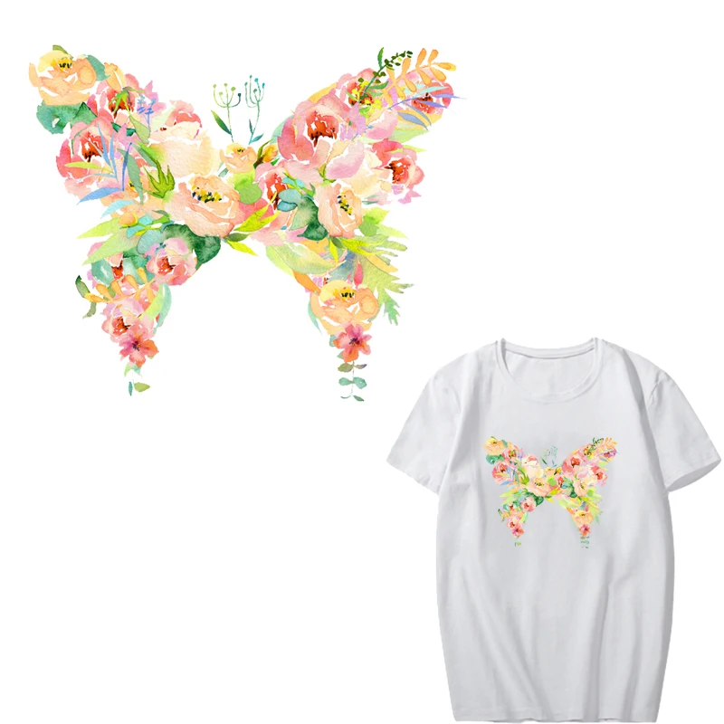 Термоклейкие нашивки с цветами и бабочками для девочек, одежда сделай сам, аппликация для футболок и платьев, Термотрансферная фотоаппликация на одежду