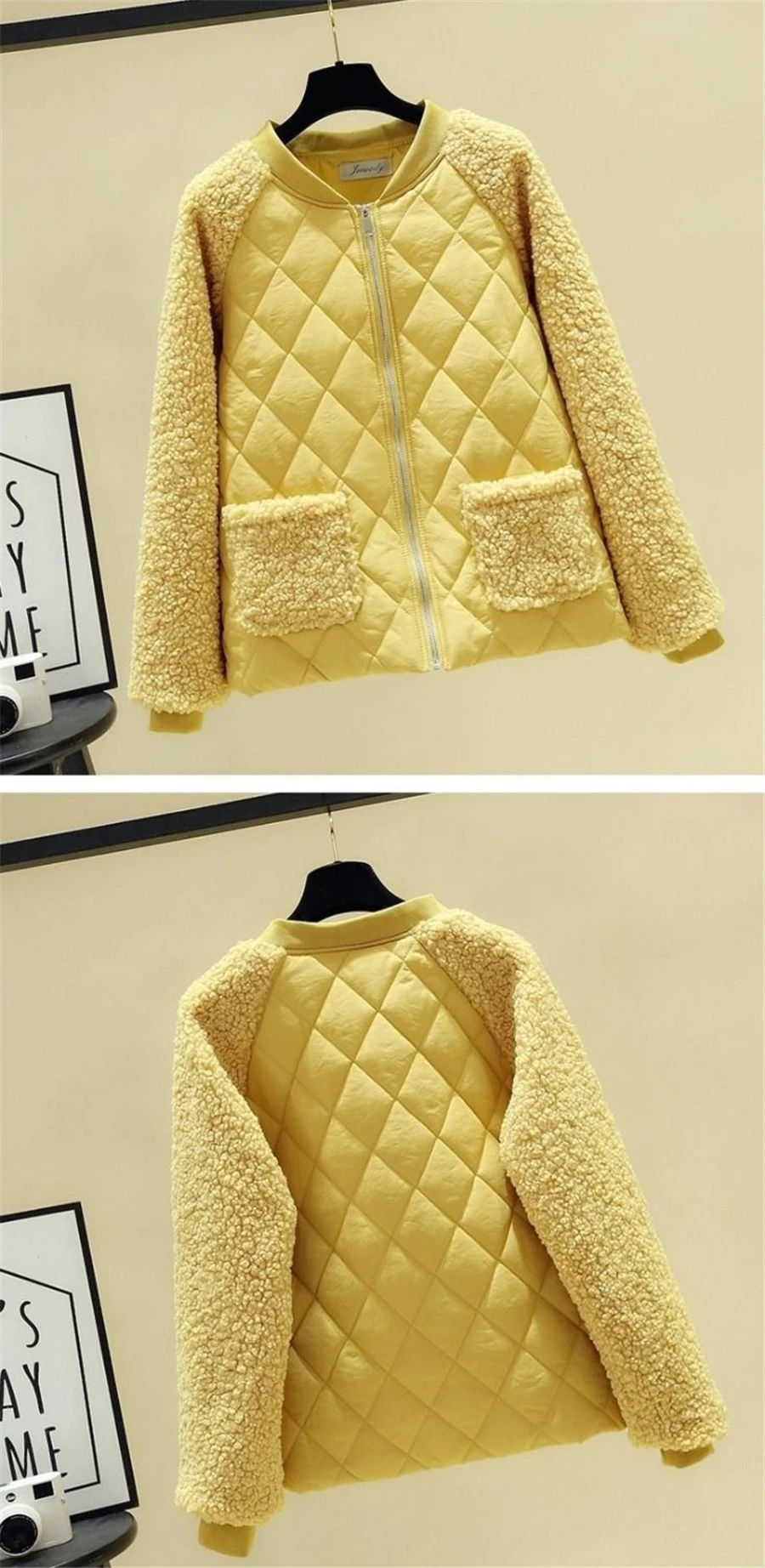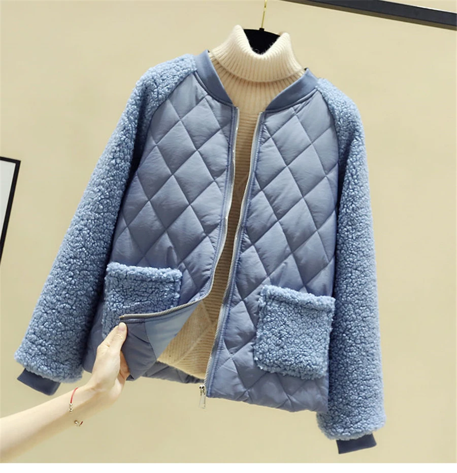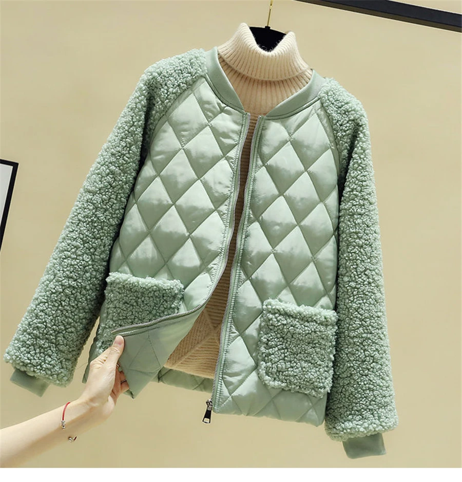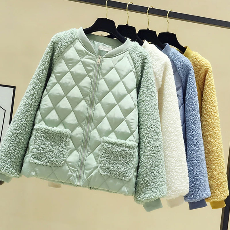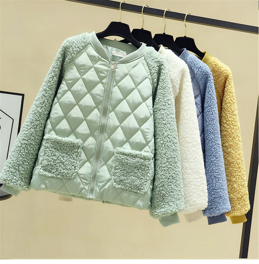 Зимнее пальто в стиле пэчворк, короткие парки из искусственной овечьей шерсти, Повседневная Милая Дизайнерская куртка, легкие стеганые пальто