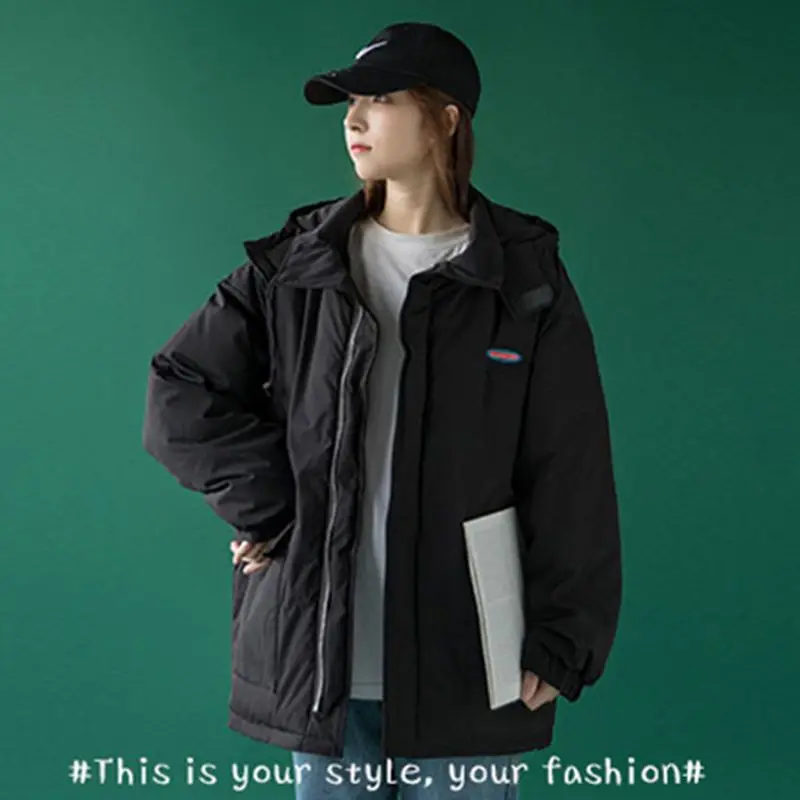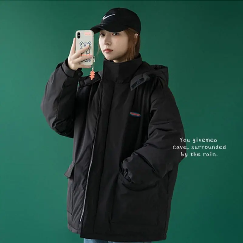 Черная мягкая куртка-карго, Женское пальто, Осень-зима 2022, новое корейское модное повседневное свободное утепленное пальто в стиле преппи для улицы