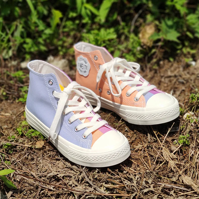 Кеды женские с высоким верхом, холщовые кроссовки ручной росписи, плоская подошва, на шнуровке, Повседневная модная обувь, разные цвета