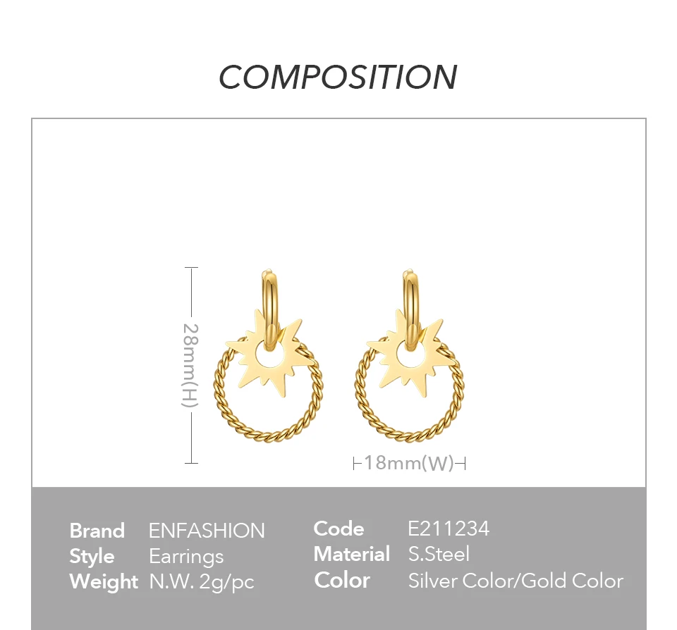 Женские серьги-подвески в форме звезды, из нержавеющей стали
