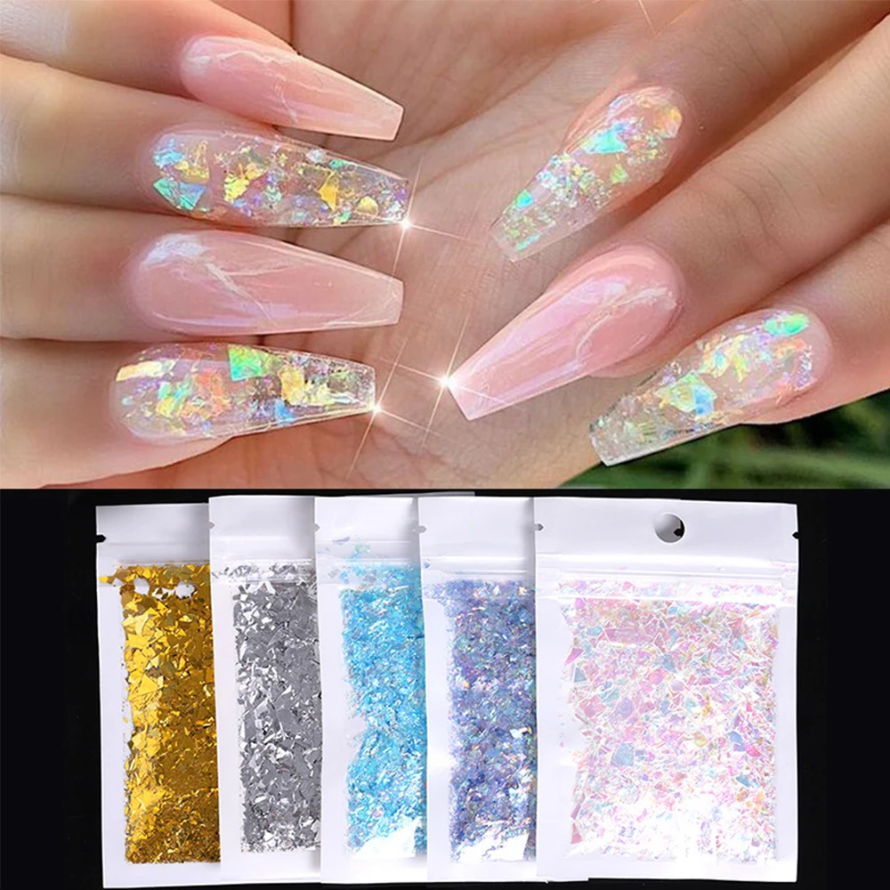 5 гпакет Фэнтезийный цветной блеск для ногтей блестящая оболочка бу...