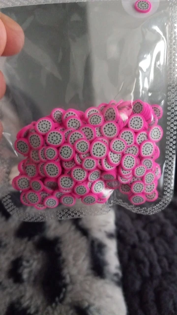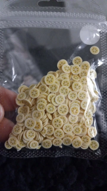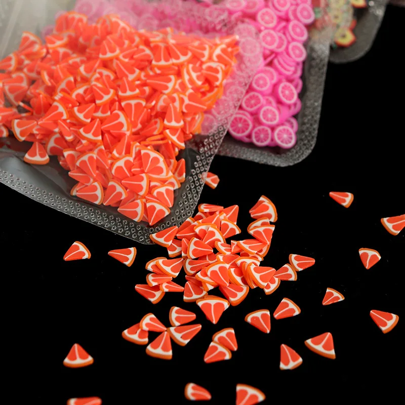 Вес: 11 г диаметр: 3-5 мм Материал: мягкая глина Особенности: имитация фруктового ломтика, 30 видов рисунков на ваш выбор. Изготовлен из мягкой глины, нетоксичный и экологически чистый. Подходит для блеска для губ diy, ногтей dcor, slimes mix и т. д.
