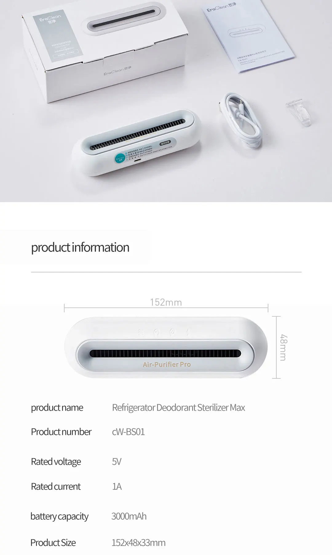 Дезодорирующий стерилизатор для холодильника Xiaomi EraClean Max Mijia, управление через приложение, умный таймер, очиститель озона для дома и кухни