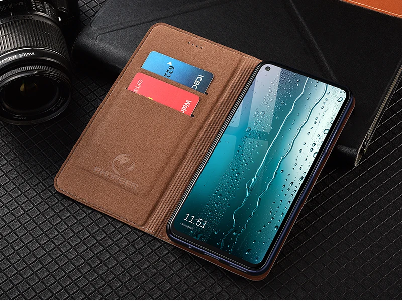 Magnet Natural Genuine Leather Skin Flip Wallet Book Phone Case Cov...