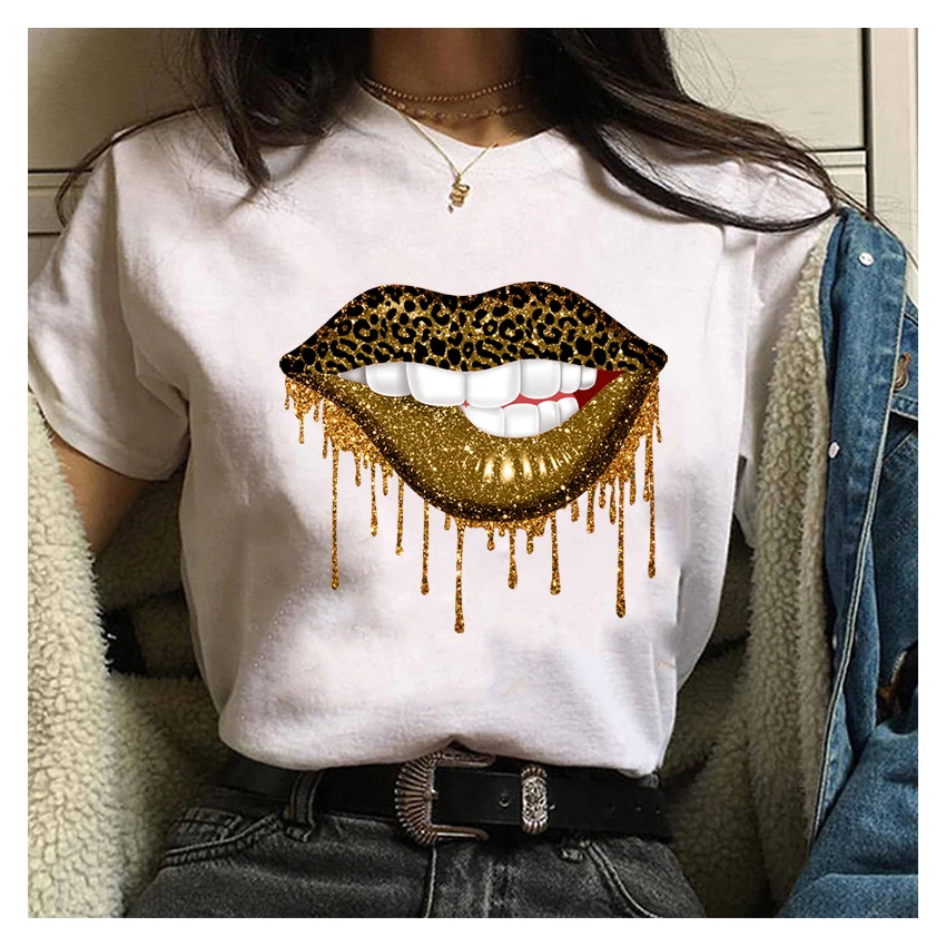 Новая летняя модная футболка с принтом губ, леопардовой расцветки, ...