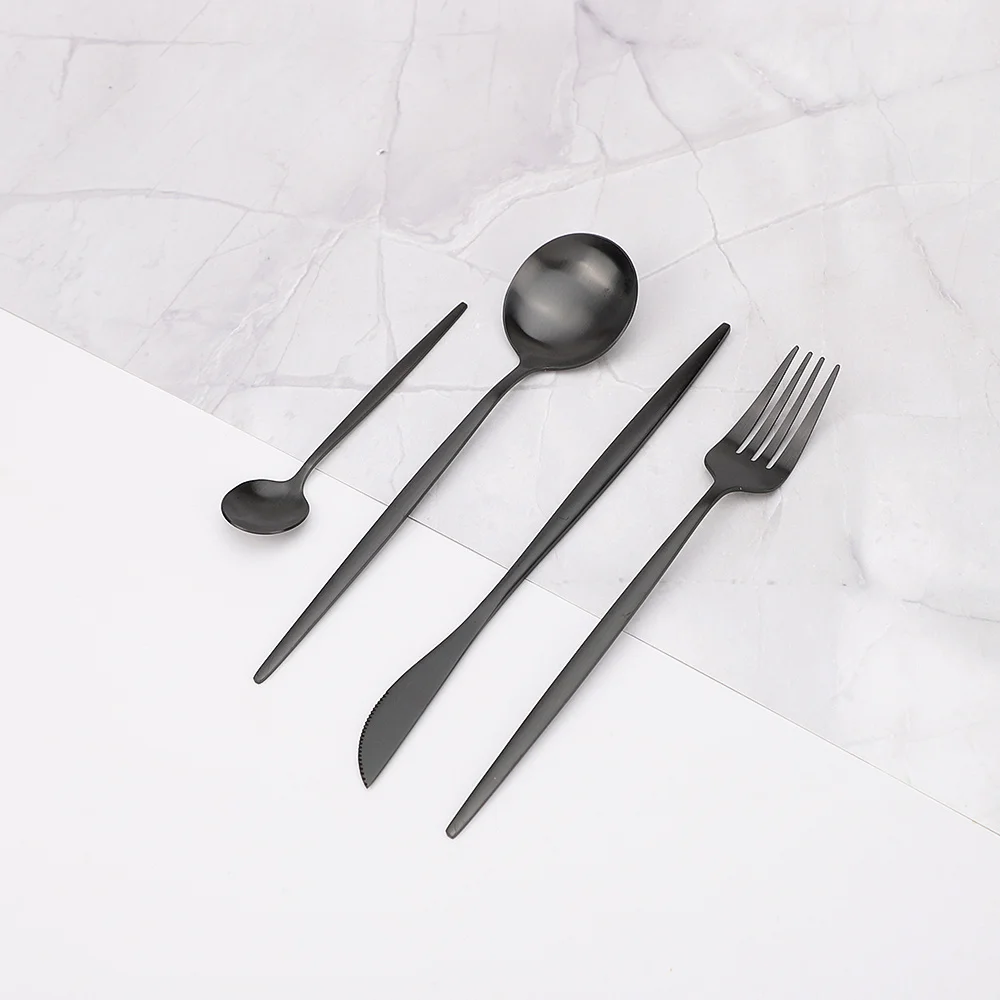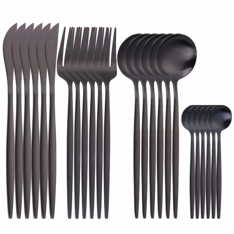 Матовые черные столовые приборы из нержавеющей стали, 24 шт.