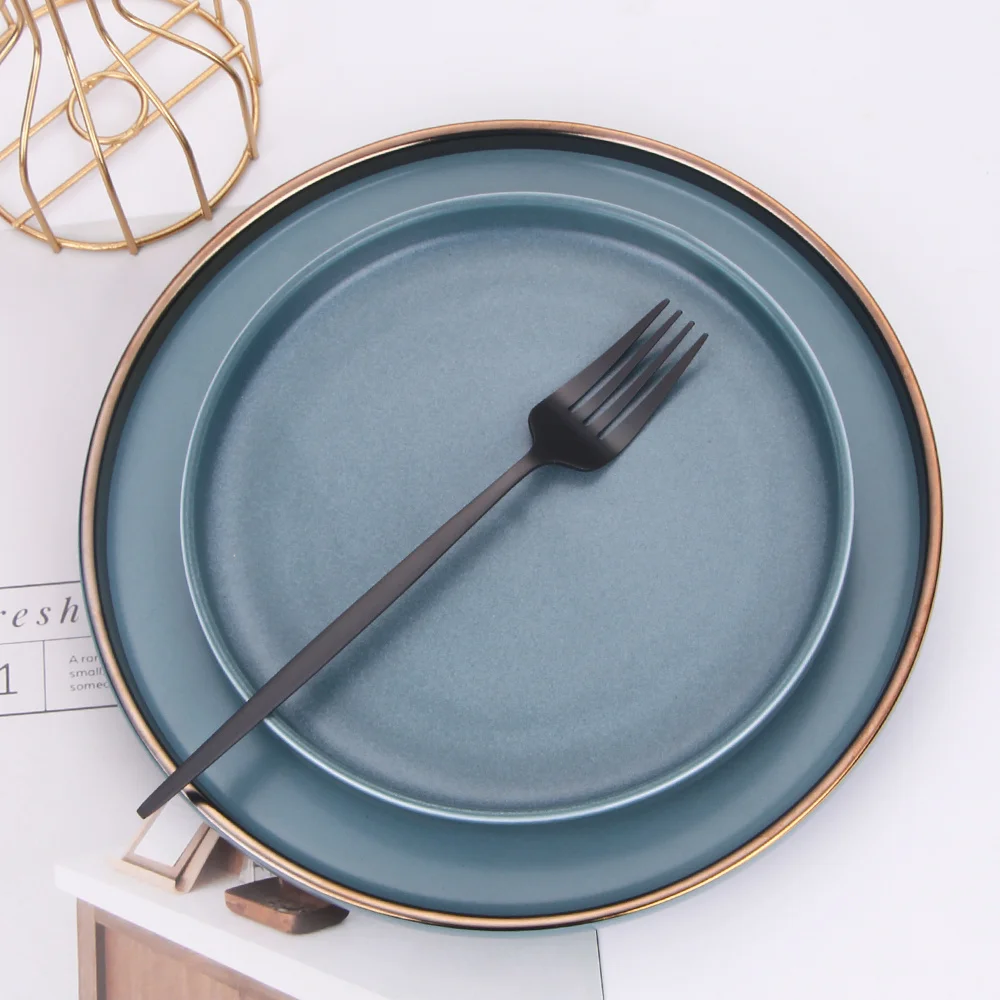 Набор столовых приборов из нержавеющей стали, 1 шт., черный, столов...