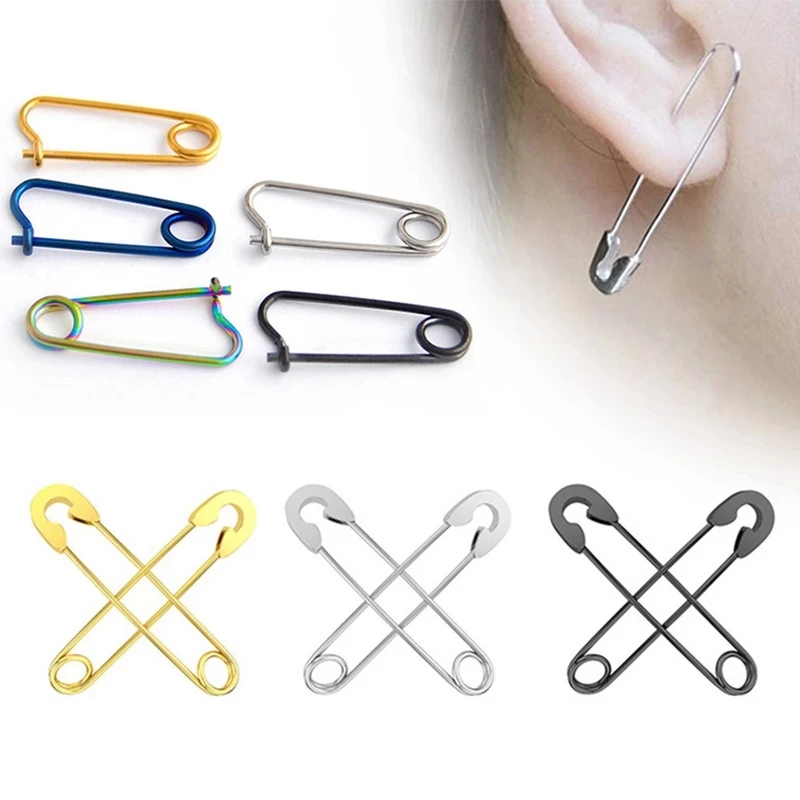 12 шт нержавеющая сталь Safey Pin серьги для женщин очаровательные ...