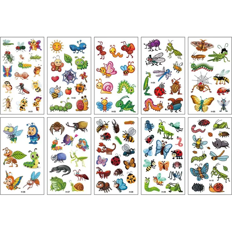 10 листовпартия, водостойкие татуировки с животными для детей