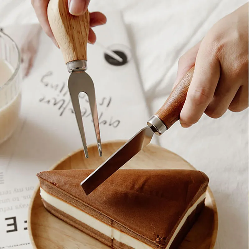 Набор ножей для сыра, столовые приборы из нержавеющей стали, нож для резки сыра с деревянной ручкой, мини нож, нож для масла, лопатка и вилка