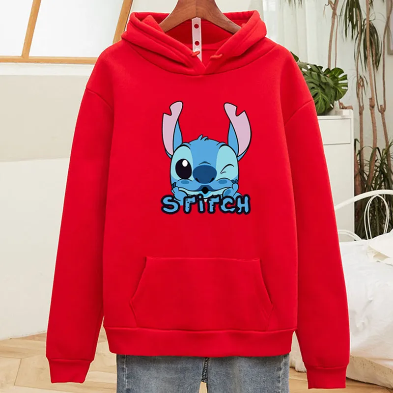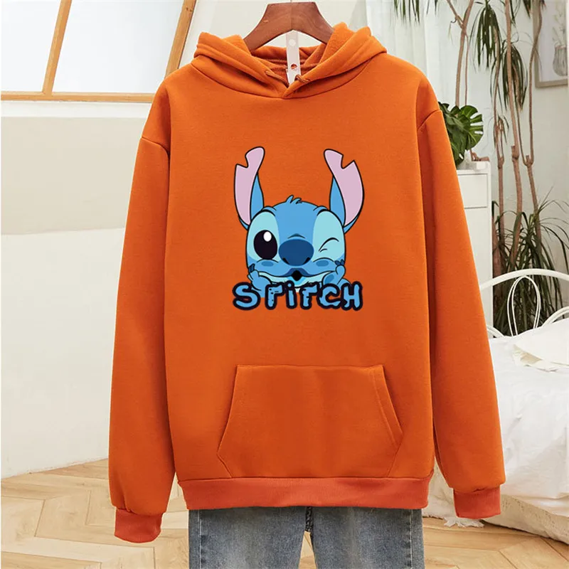 Женская толстовка с капюшоном, с длинным рукавом и мультяшным стичем, с диснеевским рисунком, теплый, Повседневный, Y2K, размера плюс