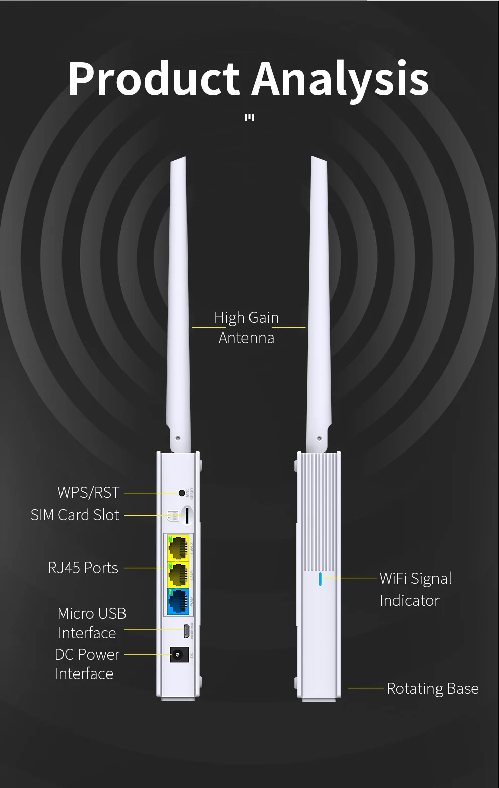CF-E3 4G LTE беспроводной маршрутизатор 4 антенны промышленного класса CPU базовая станция AP с слотом для sim-карты 2,4G 300Mbp WiFi роутер
