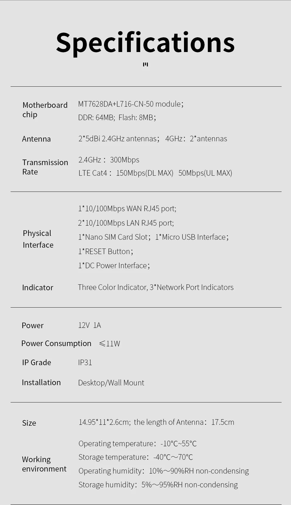 4. Антенна: 2,4 ГГц: 2 * 5dBi всенаправленная антенна 2*4Ghzantennas;