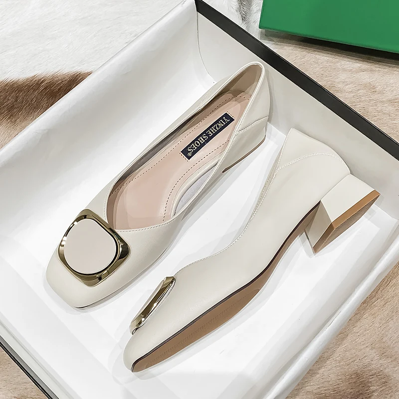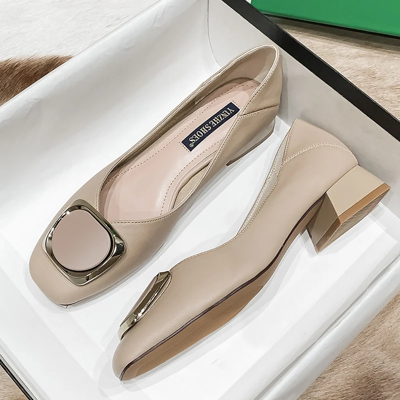 Женские Модные кожаные офисные туфли SLHJC, туфли-лодочки с квадратным носком, обувь на массивной подошве для весны и осени