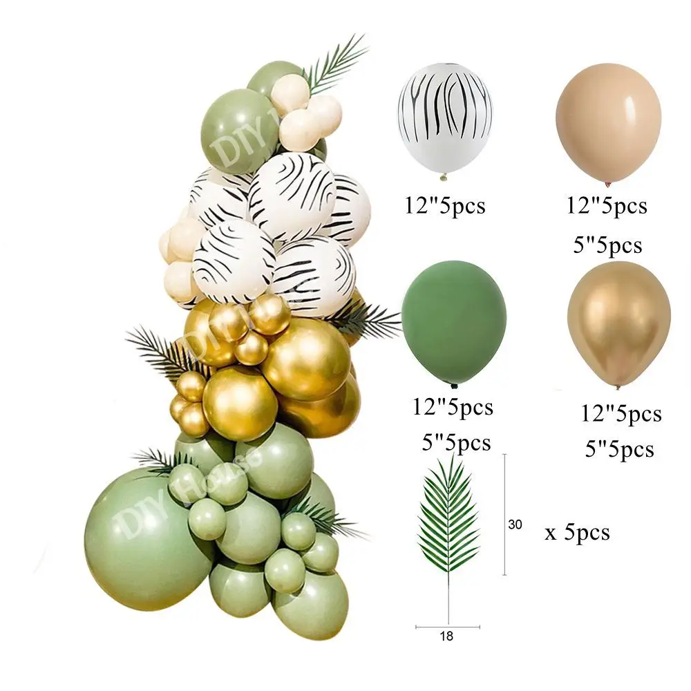 33 шт., набор зеленых металлических золотых воздушных шаров в виде авокадо, для детей