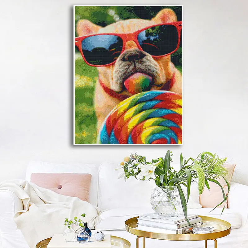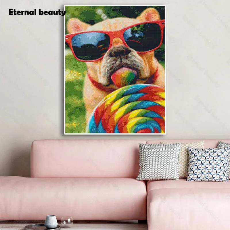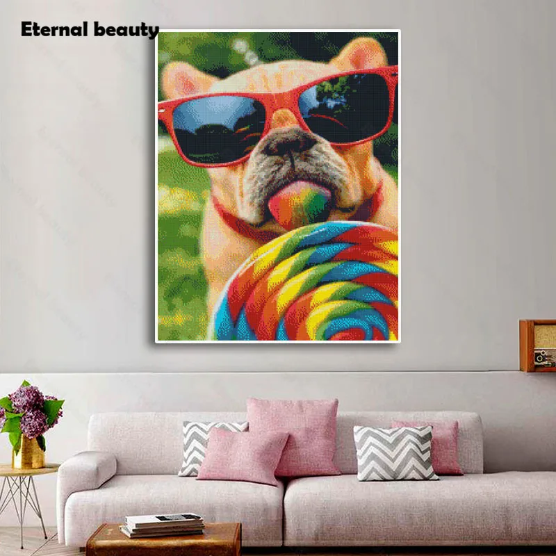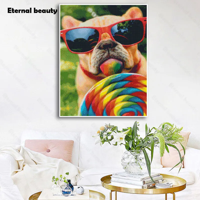 5D алмазная живопись сделай сам, забавная собака, полностью квадратная, круглая Алмазная вышивка, леденец, щенок, наборы для вышивки крестиком стразы, мозаика в подарок