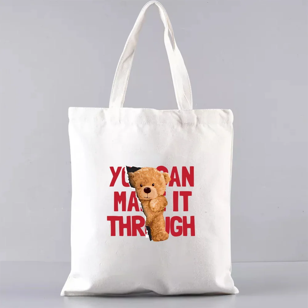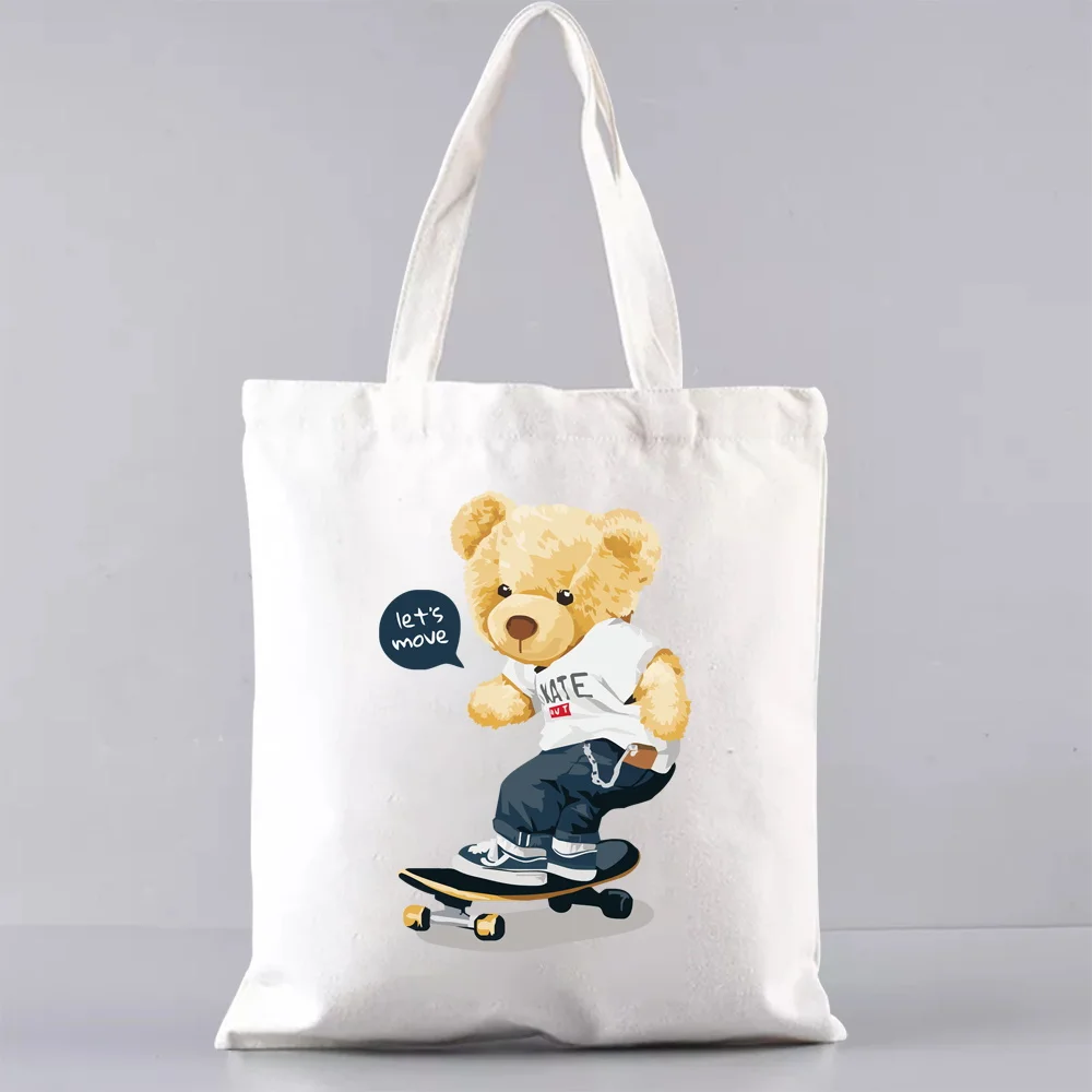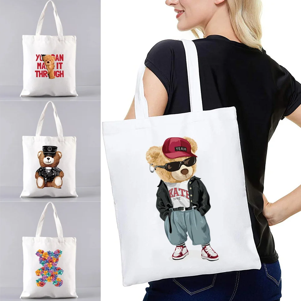 Женская сумка для покупок, большая многоразовая сумка-тоут с рисунком медведя из полиэстера, сумки-тоуты для продуктов, Портативная сумка для покупок через плечо