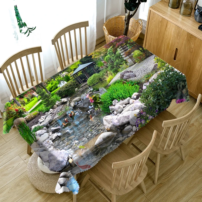 Красивая утолщенная хлопчатобумажная скатерть с цветами и Бруком, 3d Рисунок зеленого мира, морской пейзаж, моющаяся ткань, прямоугольная круглая скатерть