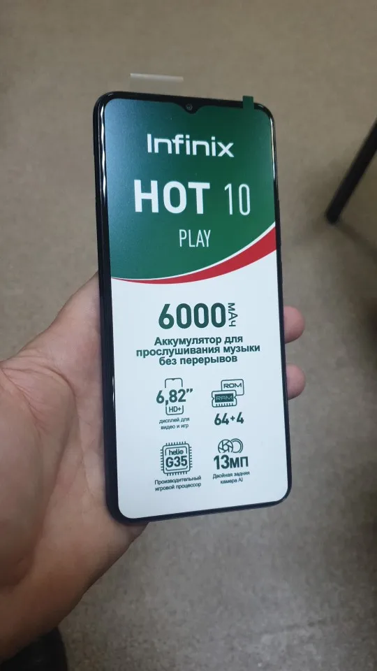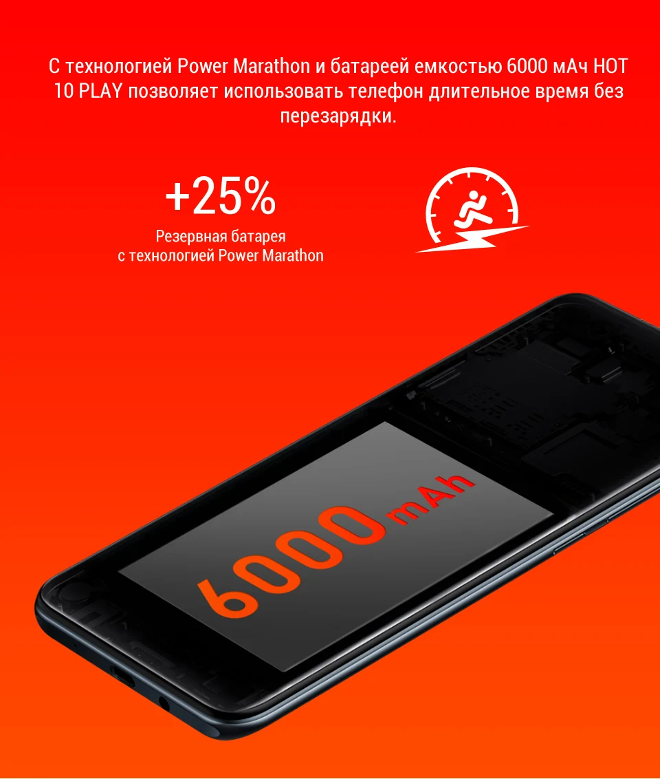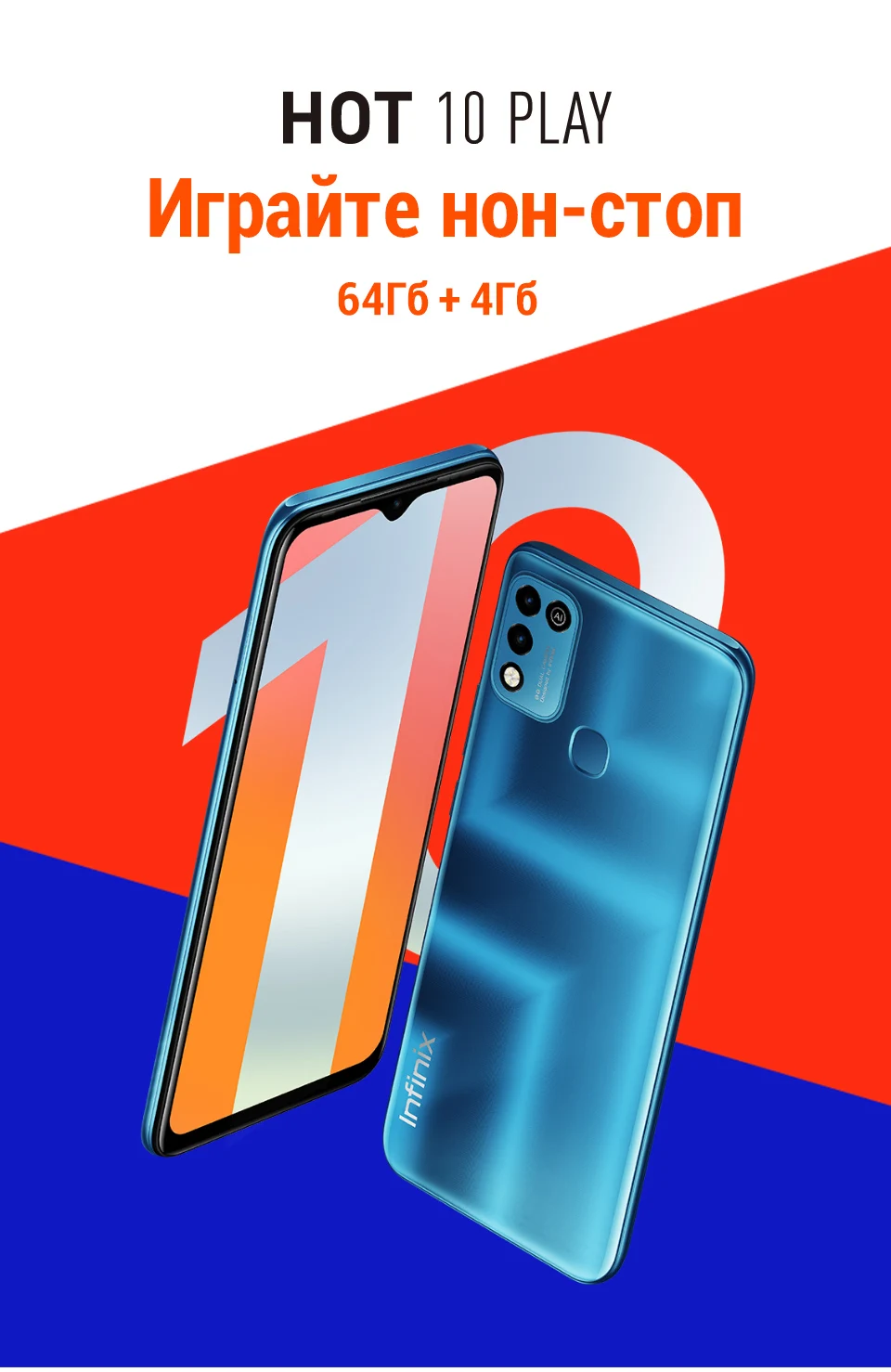 Смартфон Infinix HOT 10 play 4+64GB,распознавание лица и отпечатка пальца,Режим энергосбережения,российская официальная гарантия