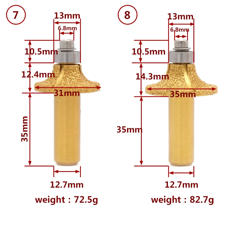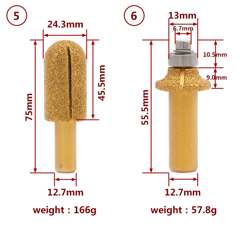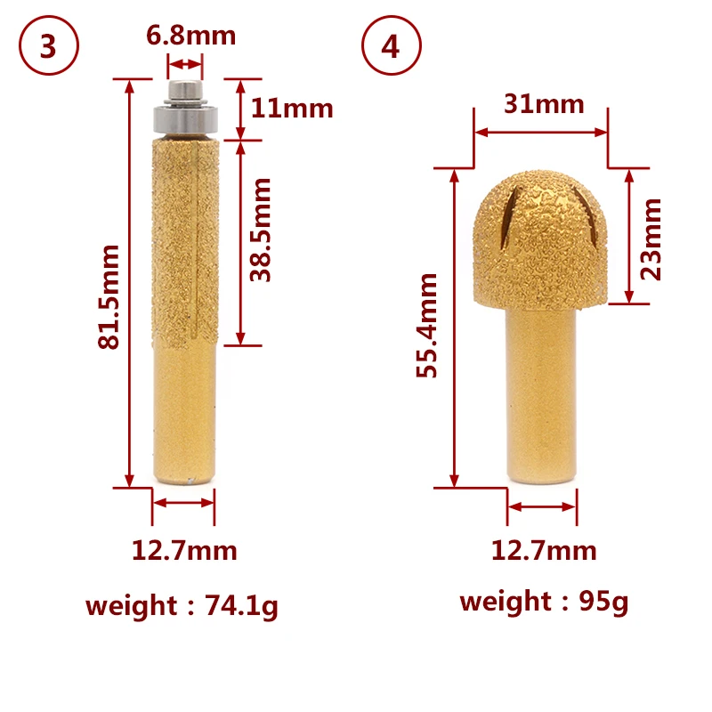 Алмазные фрезы с вакуумной пайкой, хвостовик 12 дюйма, 1 шт.