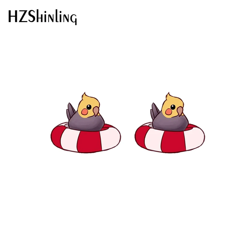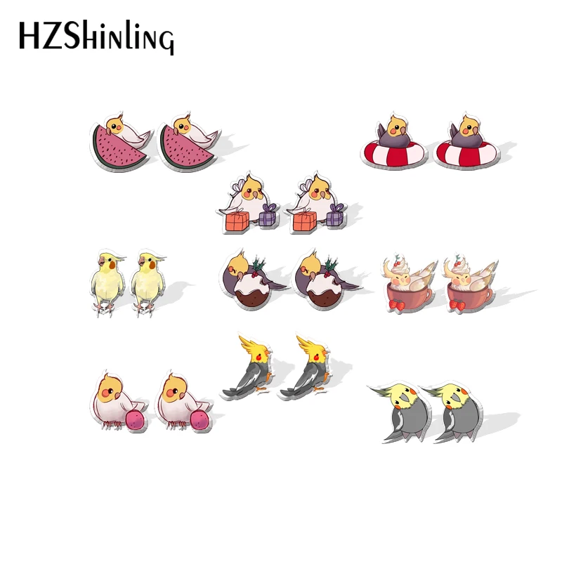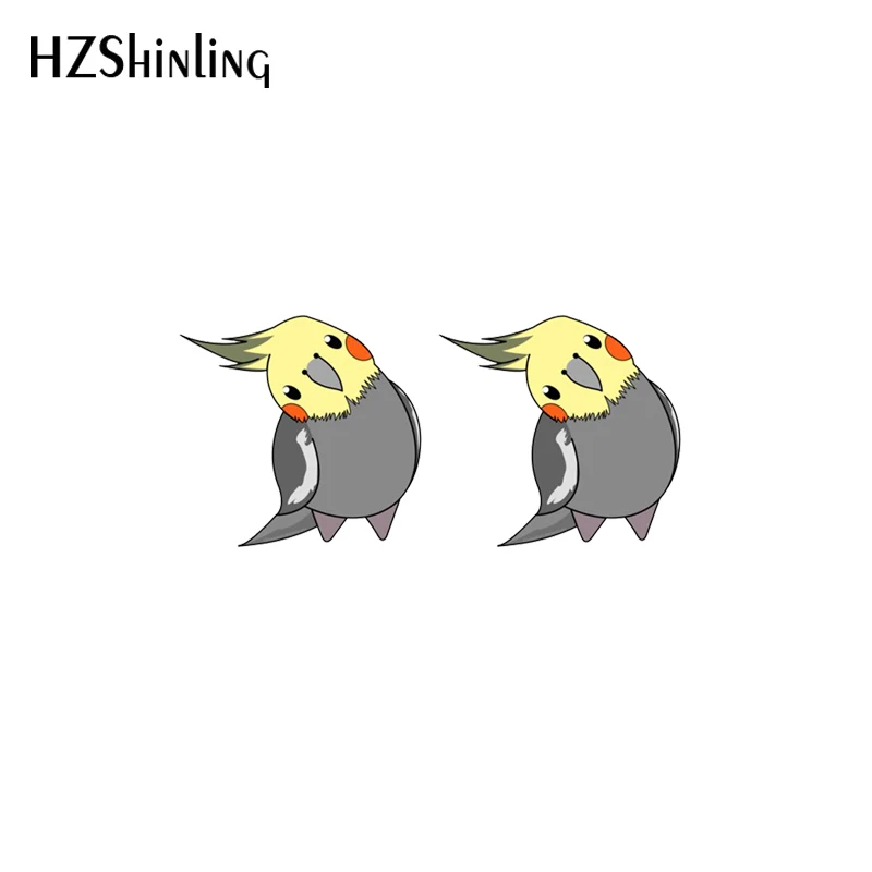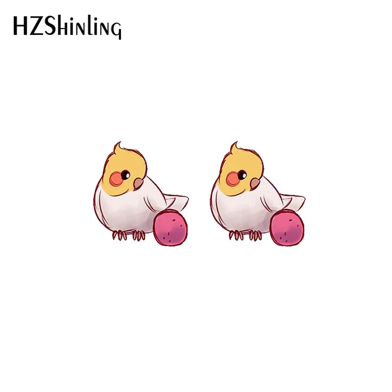 Новинка 2021, серьги-гвоздики в виде кокатила, милая птица, искусственная эпоксидная смола, фотография