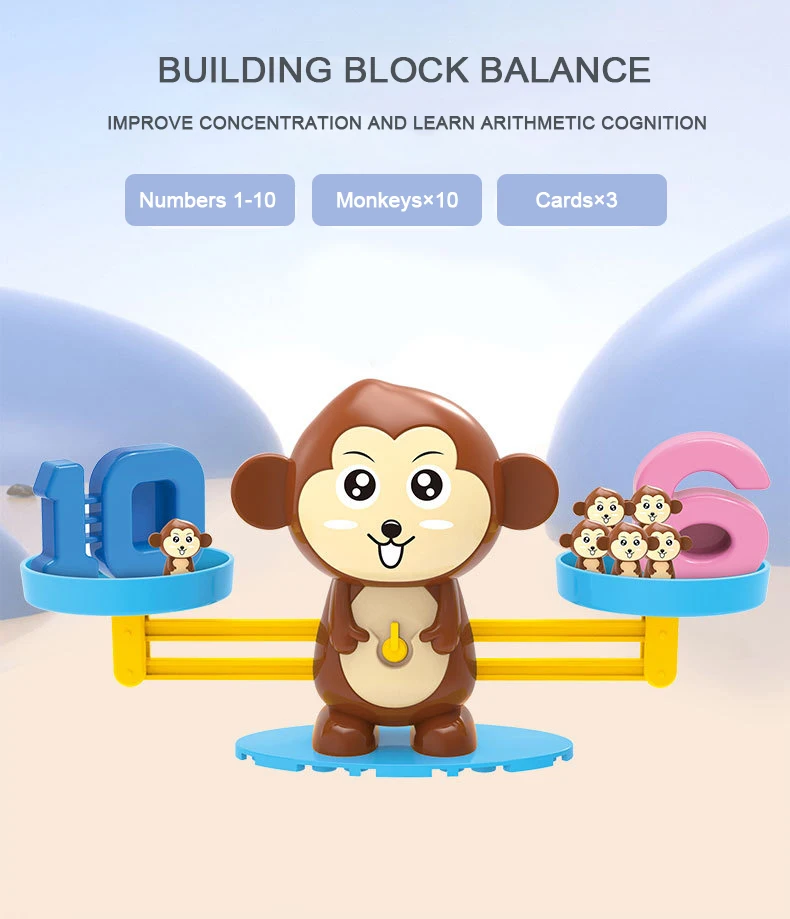 Монтессори Вес Баланс животных математические игрушки арифметическое обучение обезьяна баланс животных весы количество игра Обучающие игрушки для детей65 шт. Набор обучающих игр-игровой Балансирующий Набор для игры с обезьяной в комплекте с забавной платформой для обезьяны, 19 счетных обезьян, цифры 1 - 10, 30 двухсторонних карт, И 2 весы для размещения на шкале обезьяны.Милая и Веселая игра с подсчетом обезьяны-наша математическая игрушка с масштабе обезьяны-идеальная развивающая игрушка, помогающая маленьким детям научиться основам подсчета и простым дополнением, которое является одновременно веселым и привлекательным, идеально подходит для детей, которые борются с фокусировкой.Легко настроить и играть-с нашим счетом обезьяны и обучения игры включены инструкции и легко понять геймплей, родители и дети смогут настроить его за считанные секунды и быстро начать обучение и веселиться вместе.Идеально подходит для маленьких детей-мы разработали нашу математическую игру с изображением обезьяны, которая идеально подходит для детей в возрасте 3 лет и до игры и как обучающий игрушечный инструмент для родителей, которые хотят взаимодействовать и обучать их дети в захватывающем и интерактивном режиме.Удовлетворение гарантировано-Если по какой-либо причине вы не на 100% удовлетворены нашей математической игрой в масштабе обезьяны, затем просто свяжитесь с нашими экспертами по обслуживанию клиентов, чтобы воспользоваться нашей пожизненной гарантией и получить новую замену или полный возврат средств.Характеристика:100% новый товар высокого качества.Материал: АБС-пластикПодходит для детей старше 3 лет.Цвет: как на картинкеТренируйте координацию ребенка руками, глазами и мозгомИспользование высококачественного нетоксичного пластика, хорошего для здоровьяПусть дети учатся новомуУпаковка: цветная коробка, как показано на рисунке (легко повредить во время транспортировки), защищенная пузырчатой подушкой.