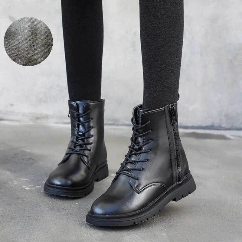 Шикарные ботинки Martin для девочек, черные на молнии, теплые хлопк...