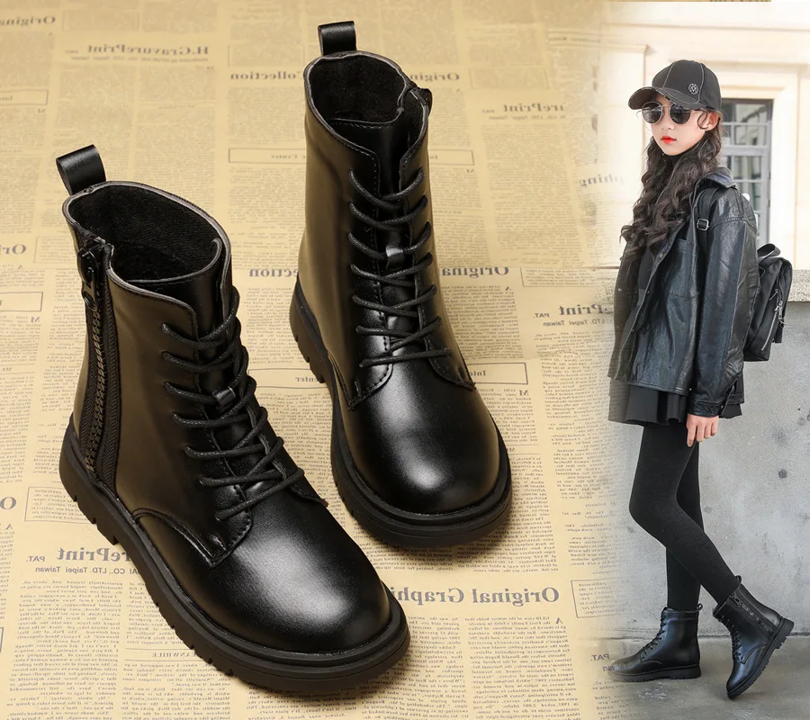 Модные черные детские ботинки Martin, обувь для девочек, нескользящ...