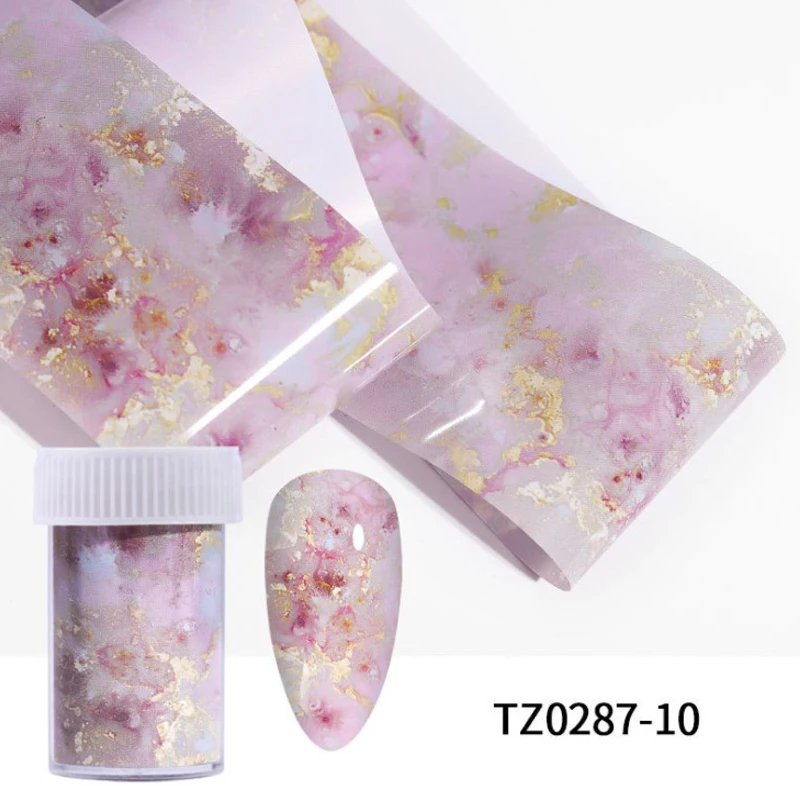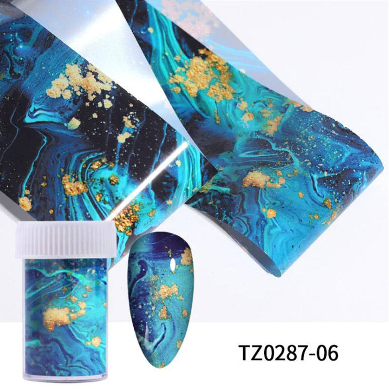 Мраморная серия, фольга для ногтей, цветущая розовая синяя бумага, переводная наклейка для дизайна ногтей, наклейки, украшения, 4*100 смрулон